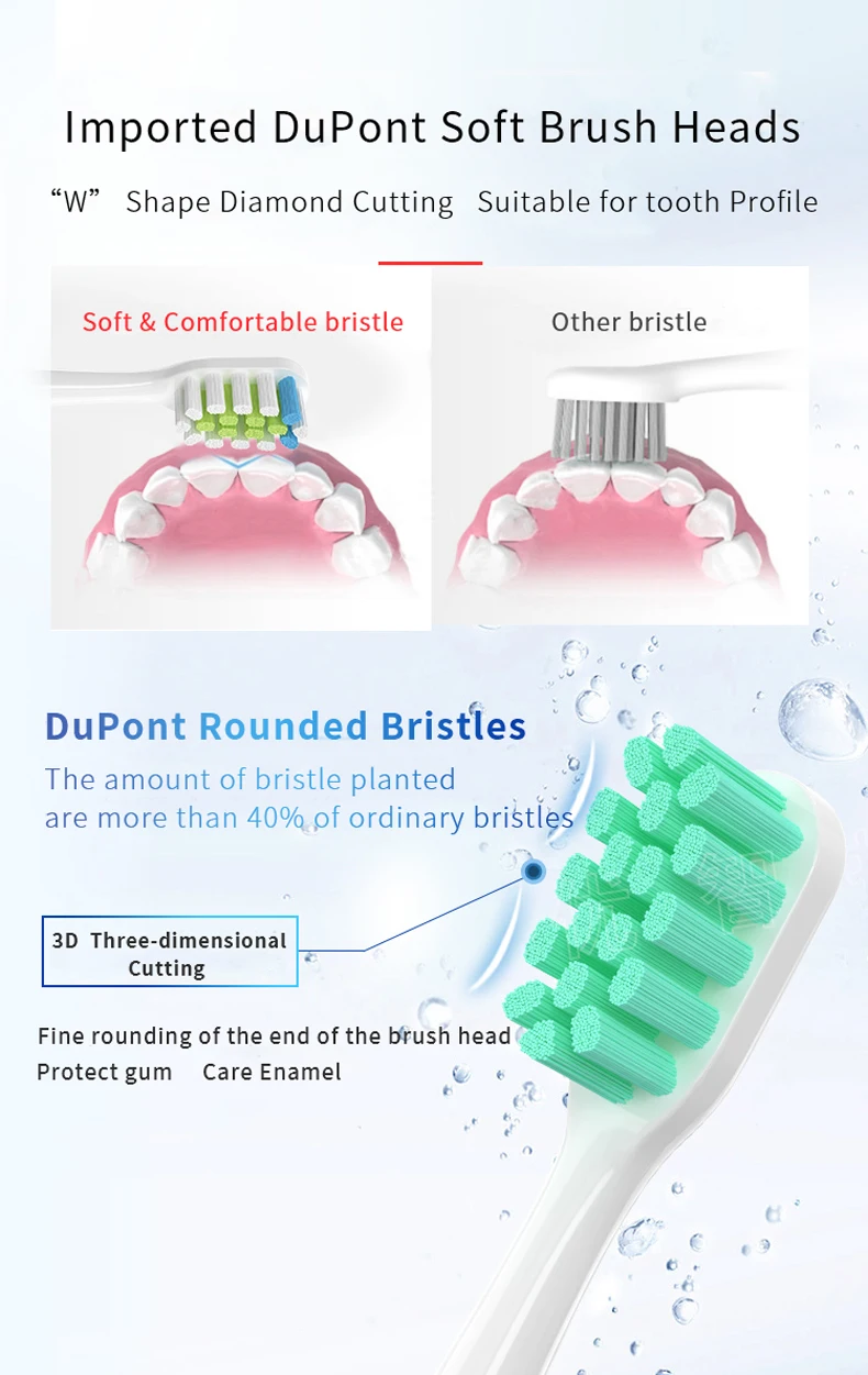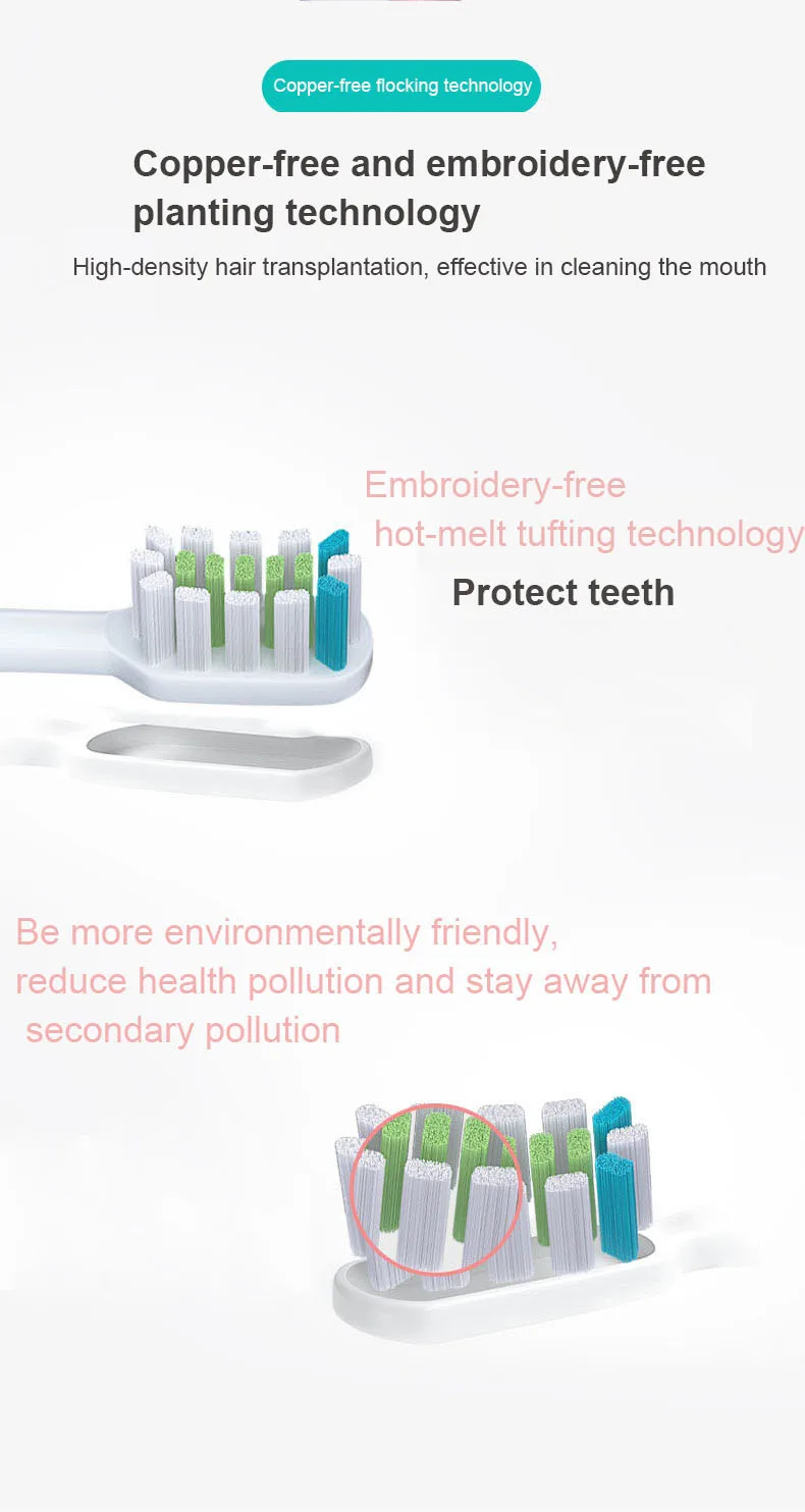 2. Каждая головка щетки стерилизована УФ-светильник перед упаковкой.Каждая посылка самостоятельно запечатана, с защитой от пыли.