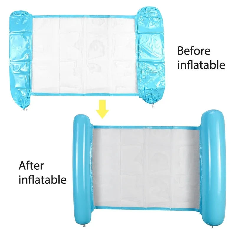 Наш водный гамак изготовлен из высококачественного экологически чистого ПВХ, прочный и долговечный. Модернизированный шезлонг для бассейна имеет две большие красочные надувные подушки. И он очень прочный, мягкий и очень быстро сохнет.