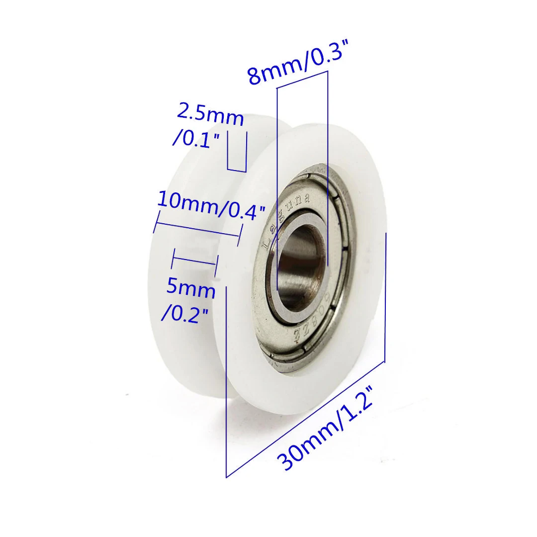 5 шт. Новый U-образный шарикоподшипник, нейлоновый, пластиковый, встроенный 608 направляющий шкив 8*30*10 мм