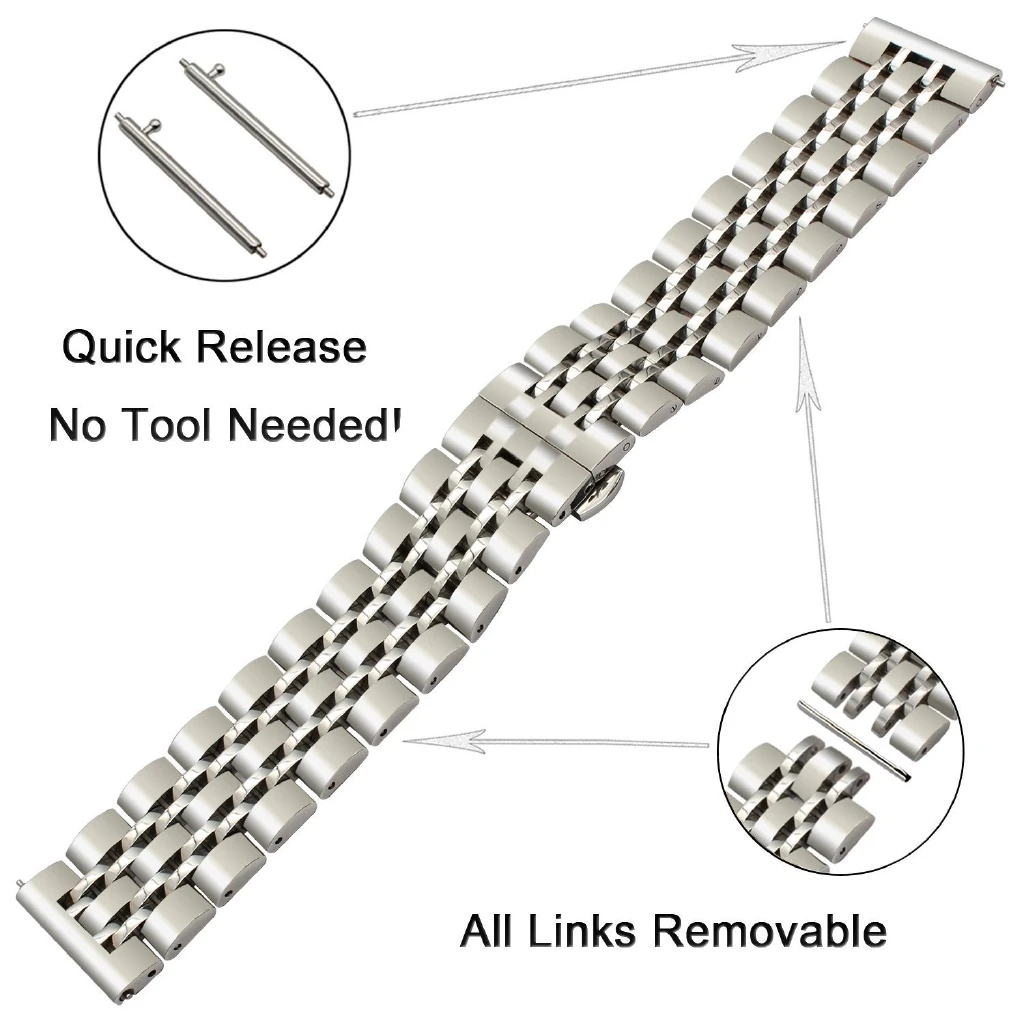 Упаковка включает: 1 * браслет из нержавеющей стали 2 * быстросъемные булавки