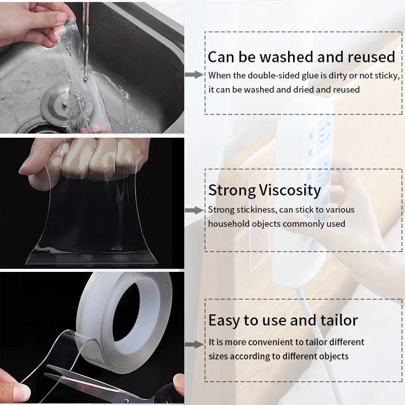 Нано-Волшебная Двусторонняя лента, прозрачные многоразовые наклейки...