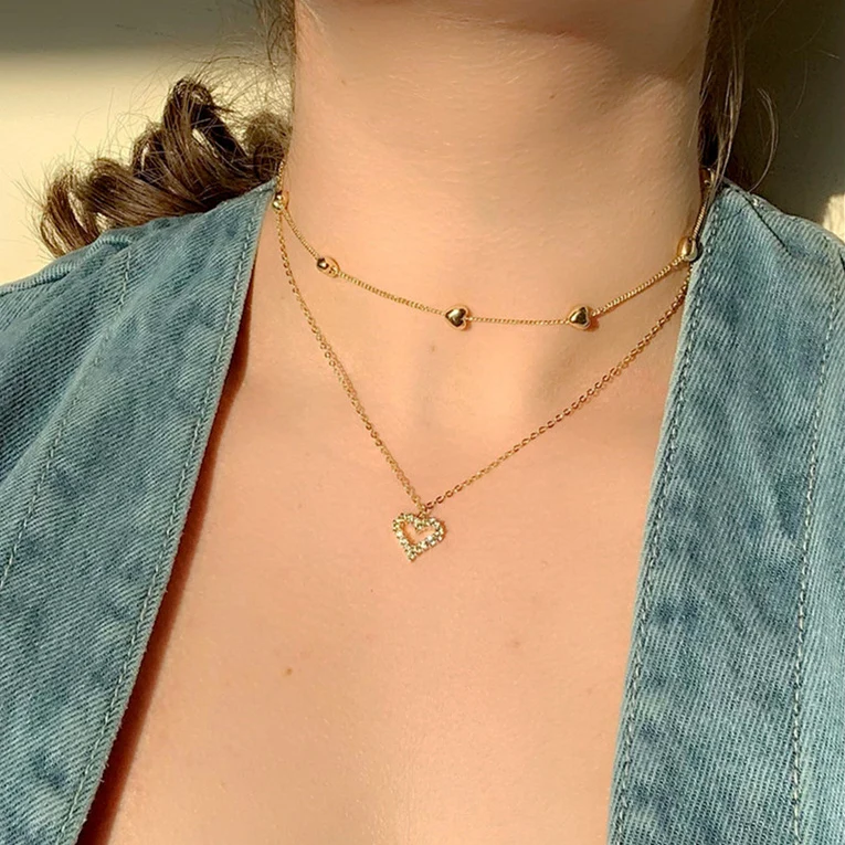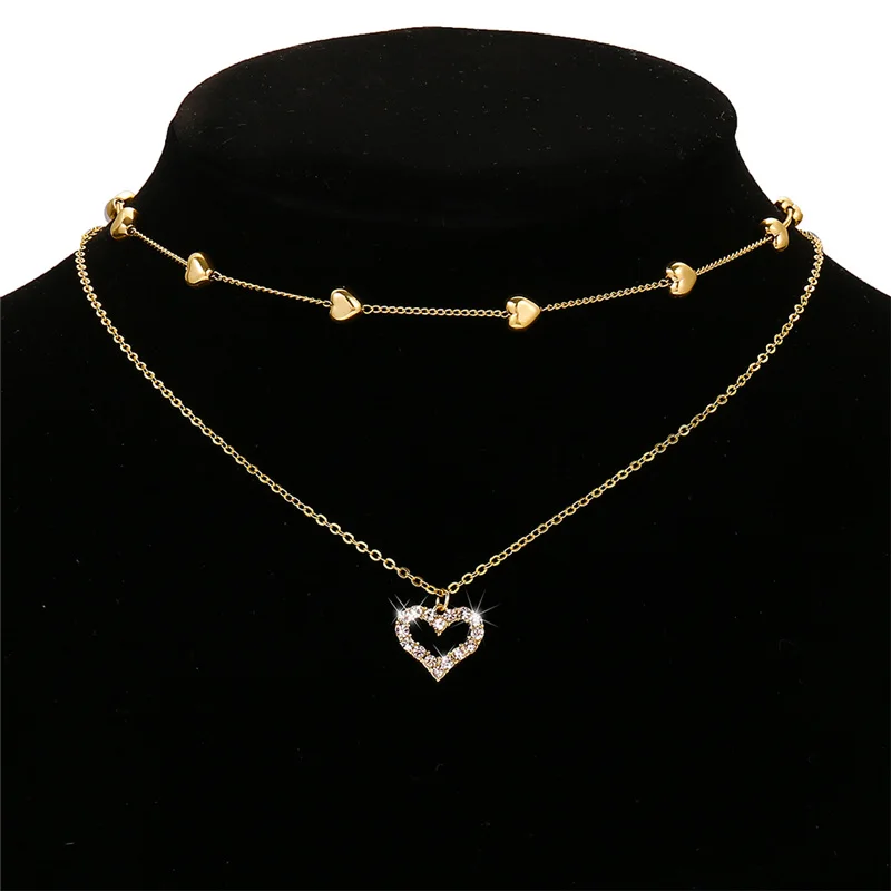 Ожерелье женское многослойное с кулоном в форме сердца, с золотыми ...