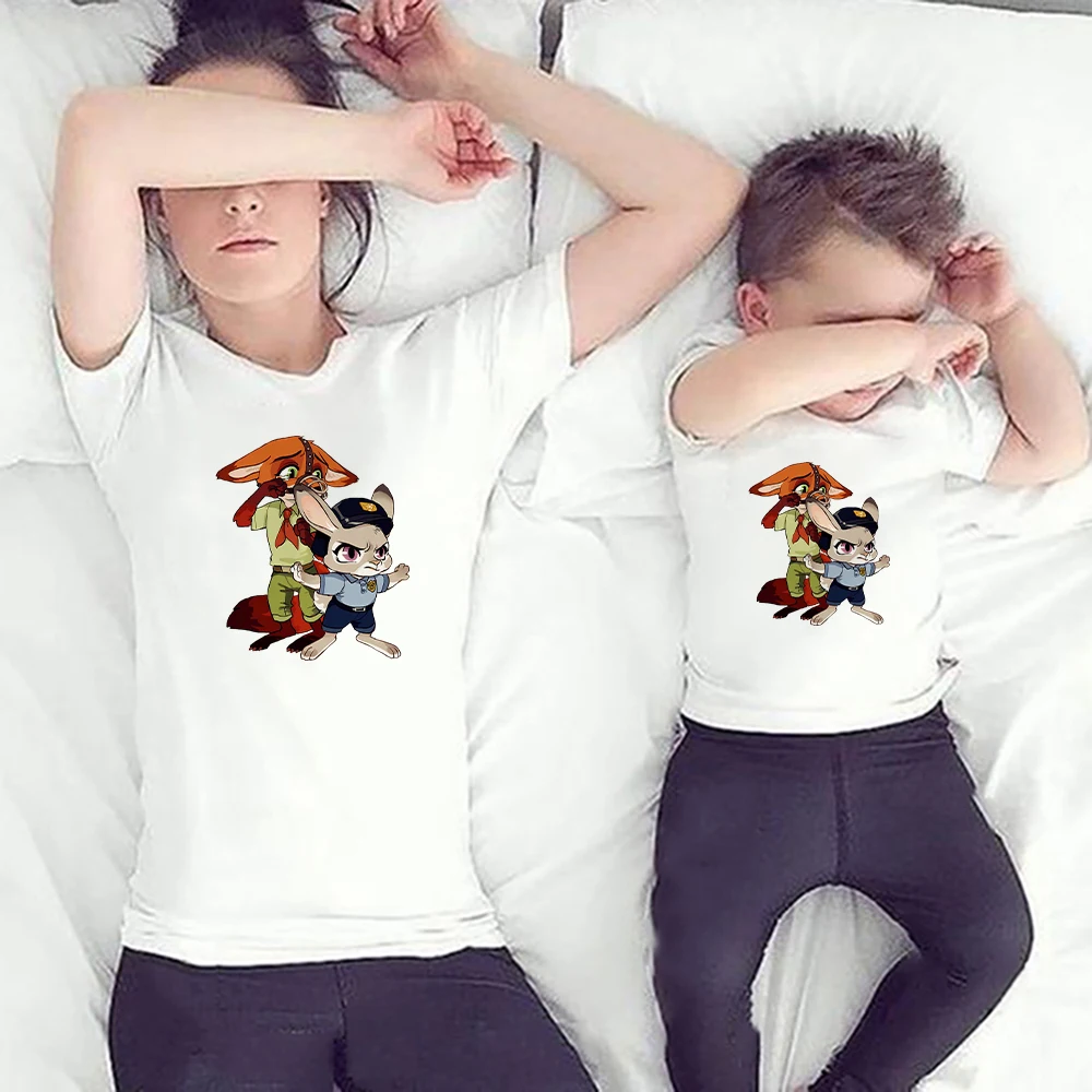 Летние детские футболки для девочек и мальчиков, повседневные белые топы, модная футболка унисекс Harajuku из зверополиса, Ника кролика, Джуди, для взрослых
