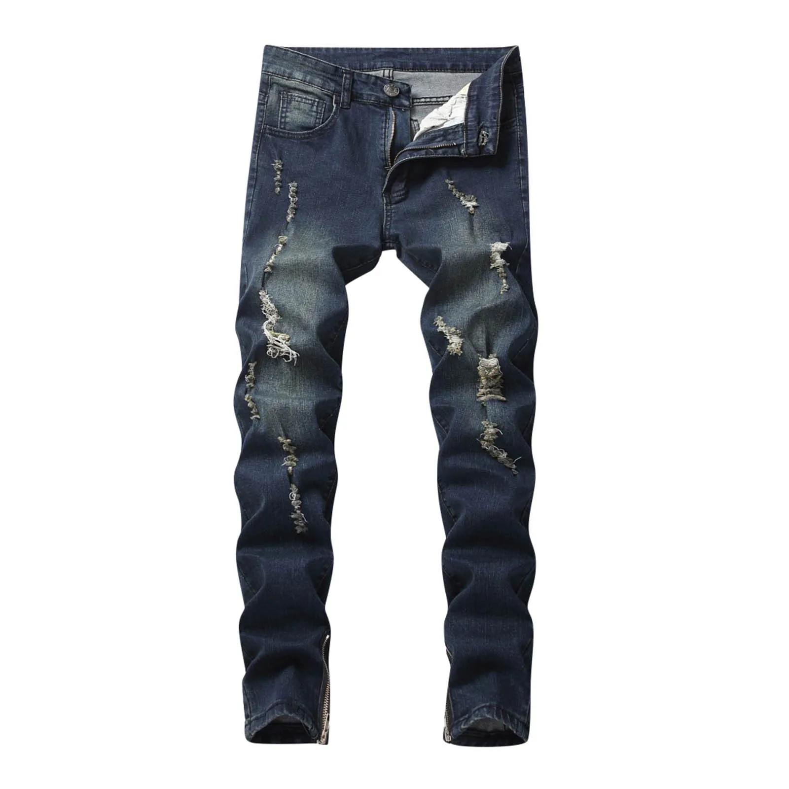 Джинсы мужские с дырками, повседневные брюки из денима для фитнеса, с карманами, рваные узкие брюки, повседневные штаны, весна-лето