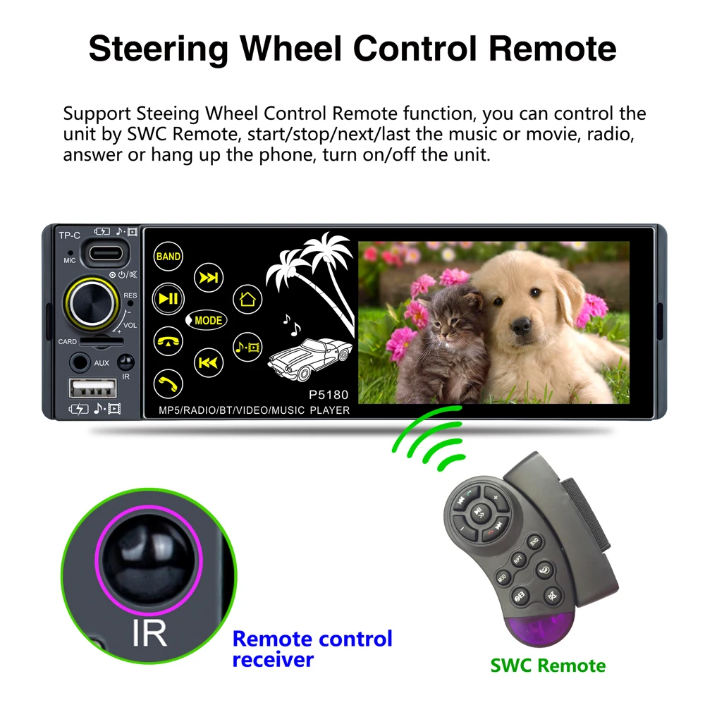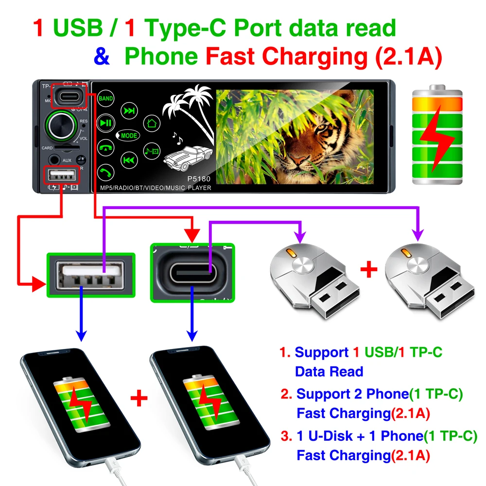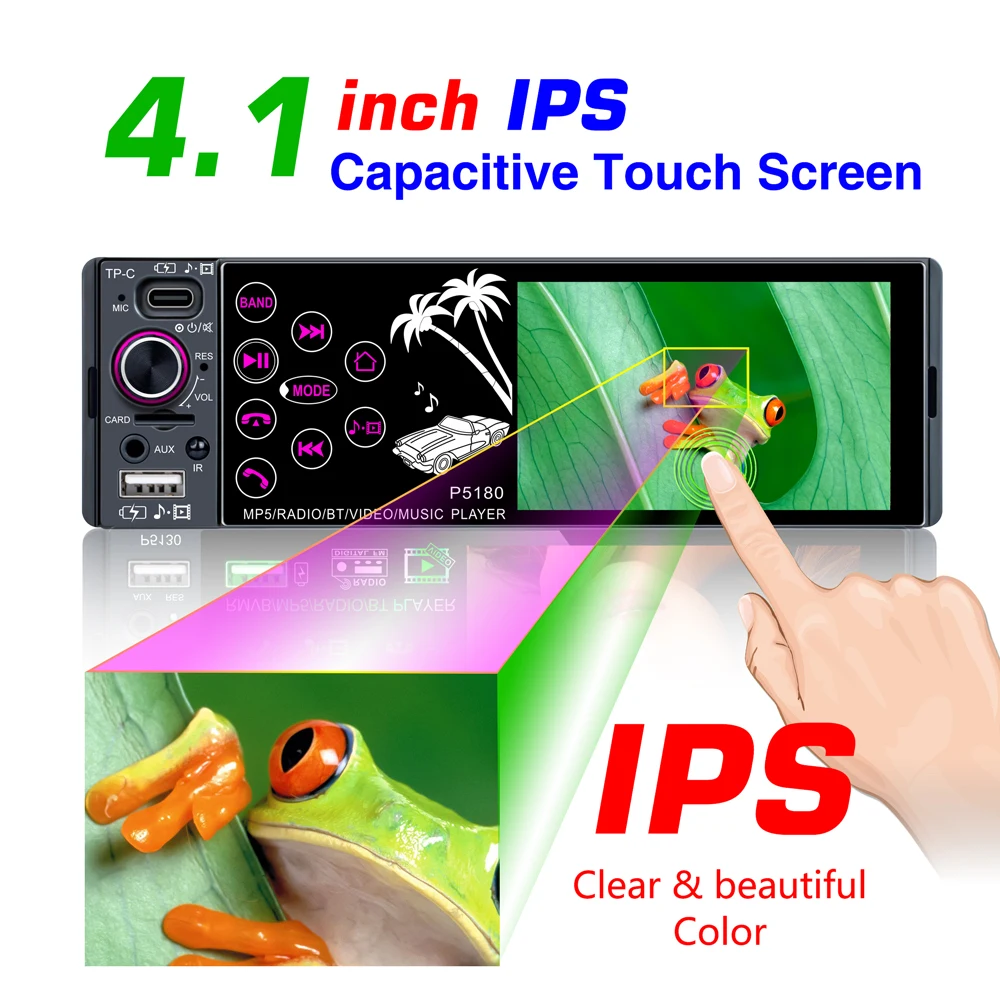 Завод P5180 1 Din автомобильное радио 3,8 "IPS сенсорный экран Bluetooth Авторадио USB AUX MP5 видео плеер MP3 Авто аудио стерео Тип C