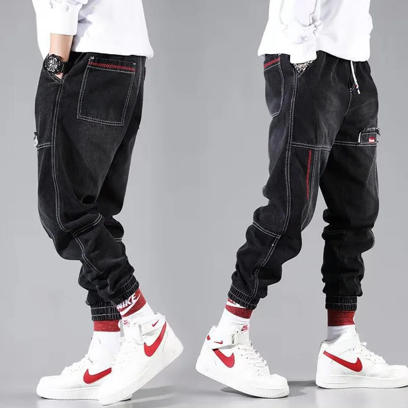 Мужские эластичные свободные джинсы, новинка, черные джинсовые комб...