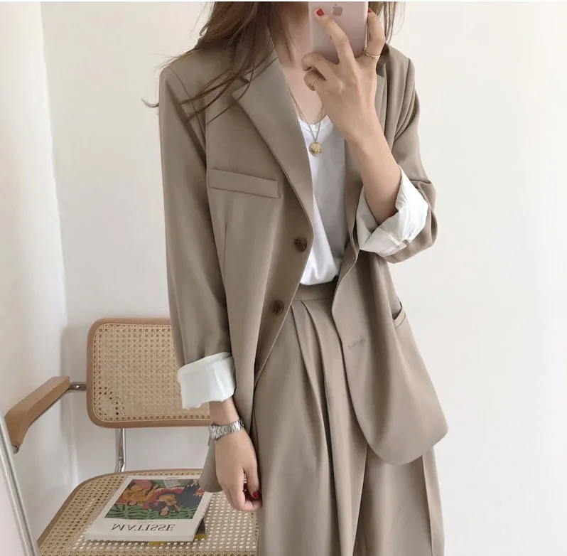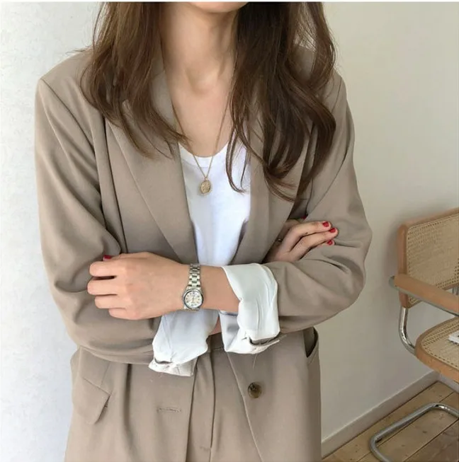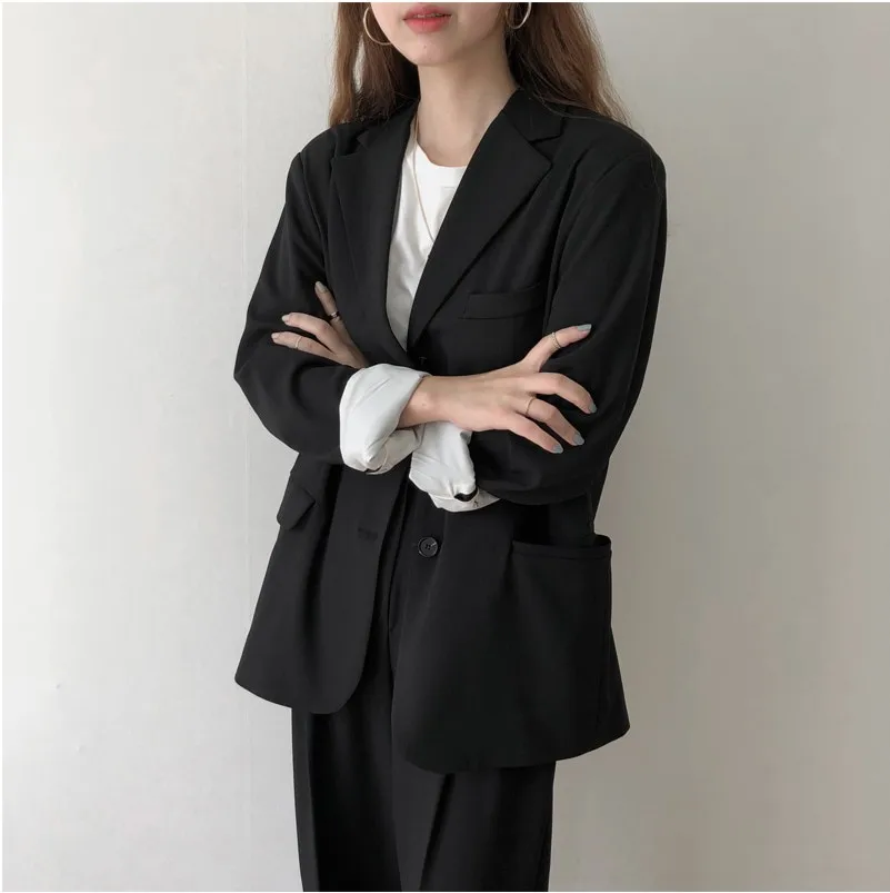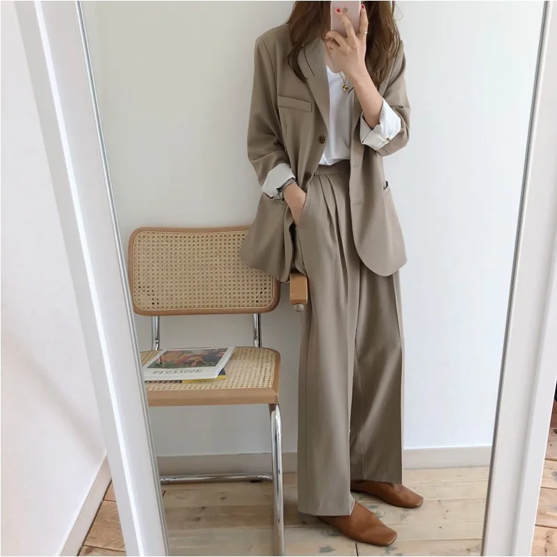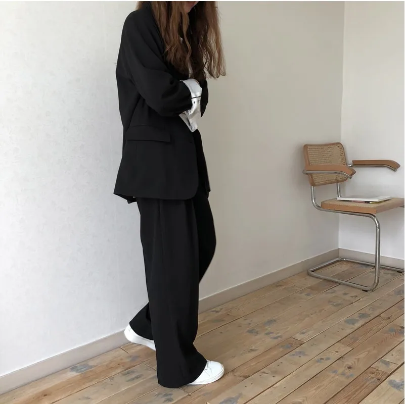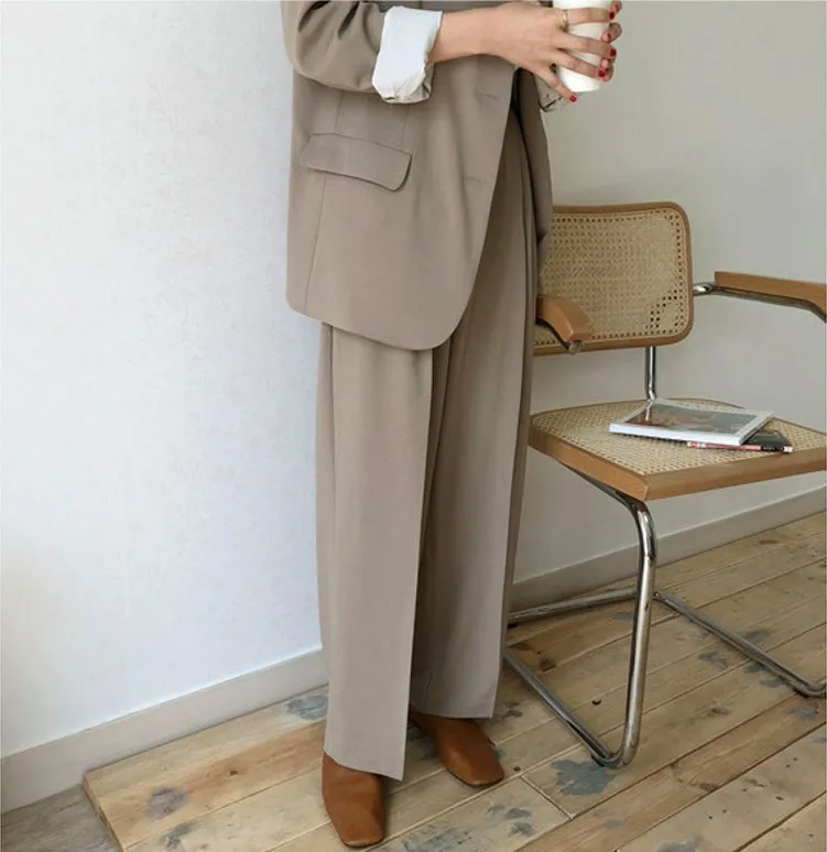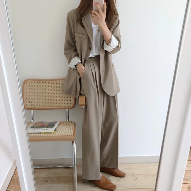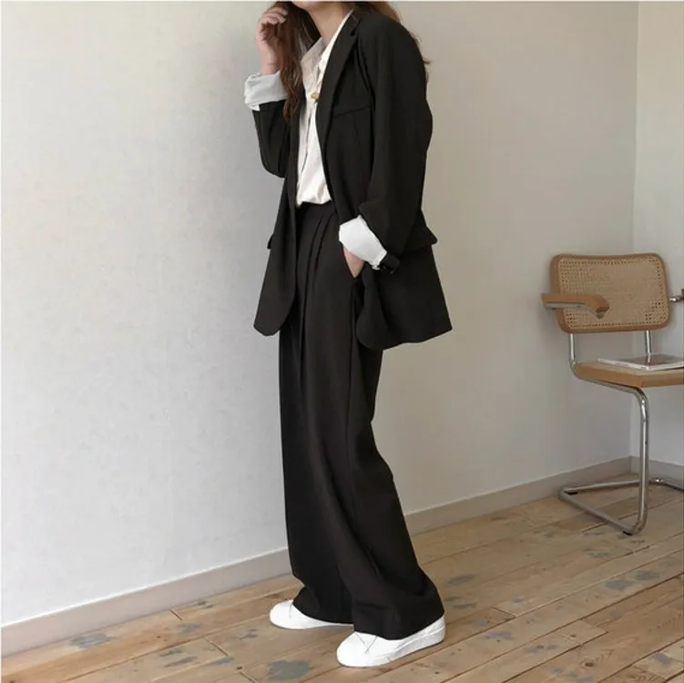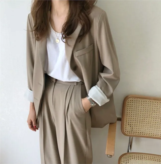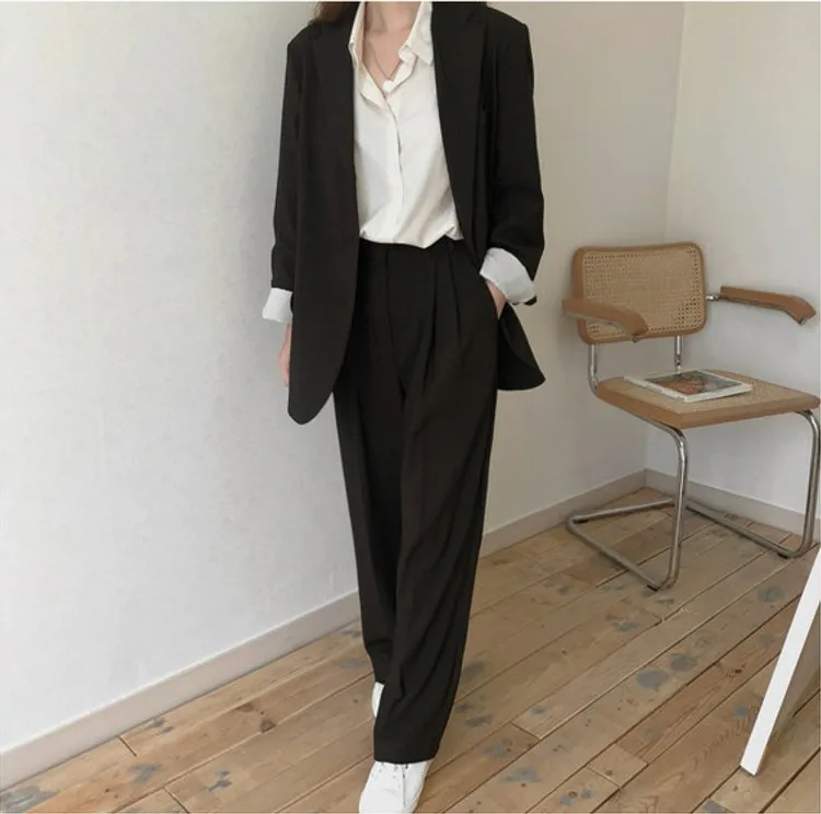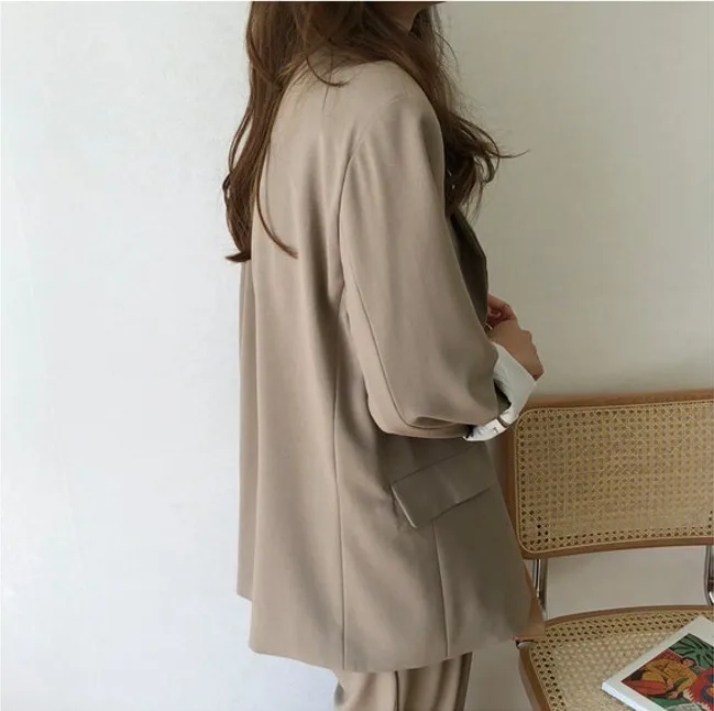 HziriP размера плюс Элегантный Ретро стиль Горячая 2021 шикарный Повседневный женские блейзеры и прямые однотонные брюки свободного покроя комплект из 2 предметов