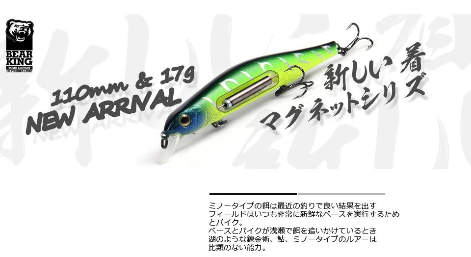Рыболовная приманка Bearking, твердая приманка из магнитной системы дальнего заброса, 11 см, 17 г, 0,8-1,2 м, качественная Воблер для мелкой рыбы