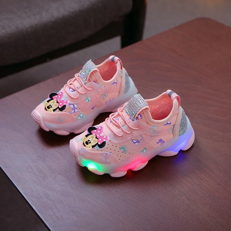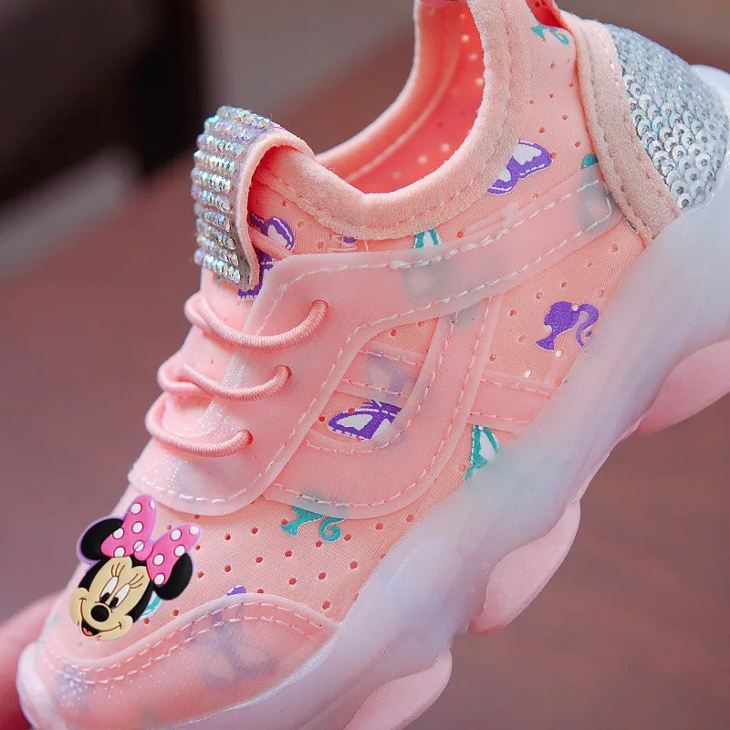 Детские повседневные ботинки с мягкой подошвой и Минни для мальчиков и девочек, спортивные ботинки для учащихся, Легкие беговые сетчатые ботинки для малышей
