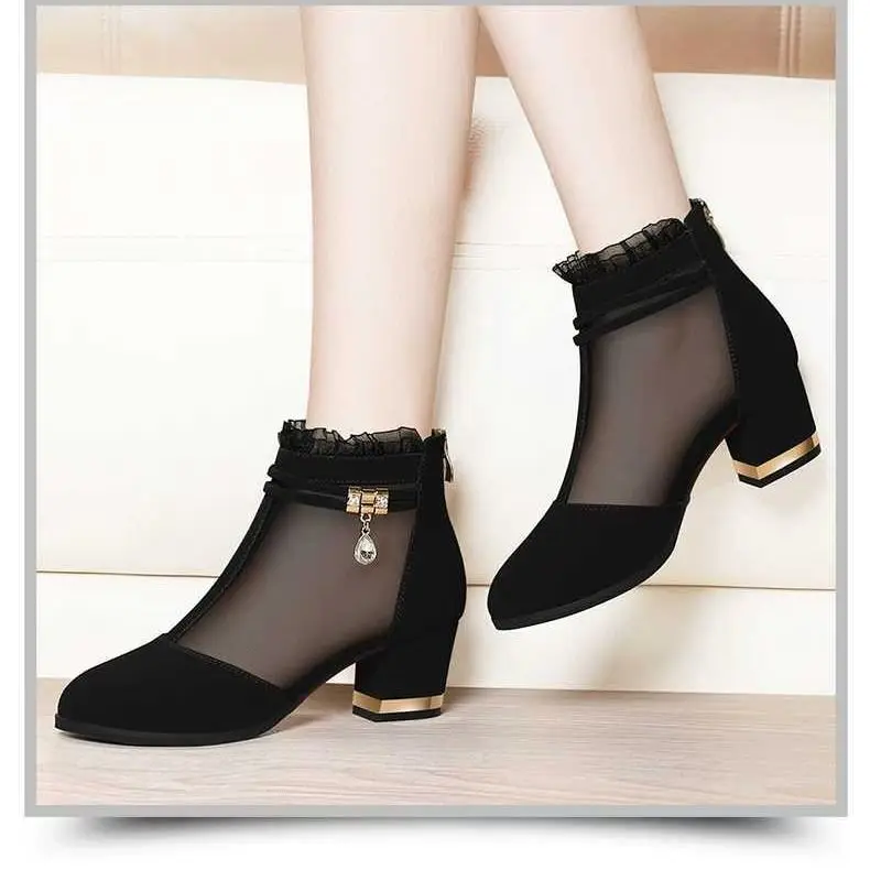 Женские сетчатые босоножки SONDR, туфли до середины икры на высоком каблуке с открытым носком, весна-лето 2021