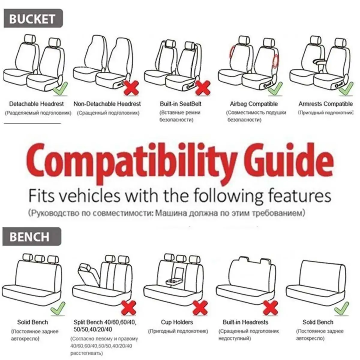 Характеристики:-дышащая ткань с высококачественным покрытием для сидений, удобная, износостойкая, легко моется, не выпадающие-Особенности d инновационные ткани и дизайн-Обновление внешнего вида старых или грязных сидений-Предотвращение расщепления, пятен, выцветания, грязи и волос домашних животных-Простота установки, подходит для большинства сидений