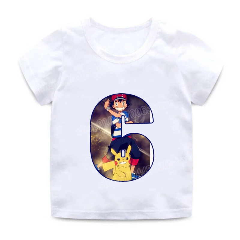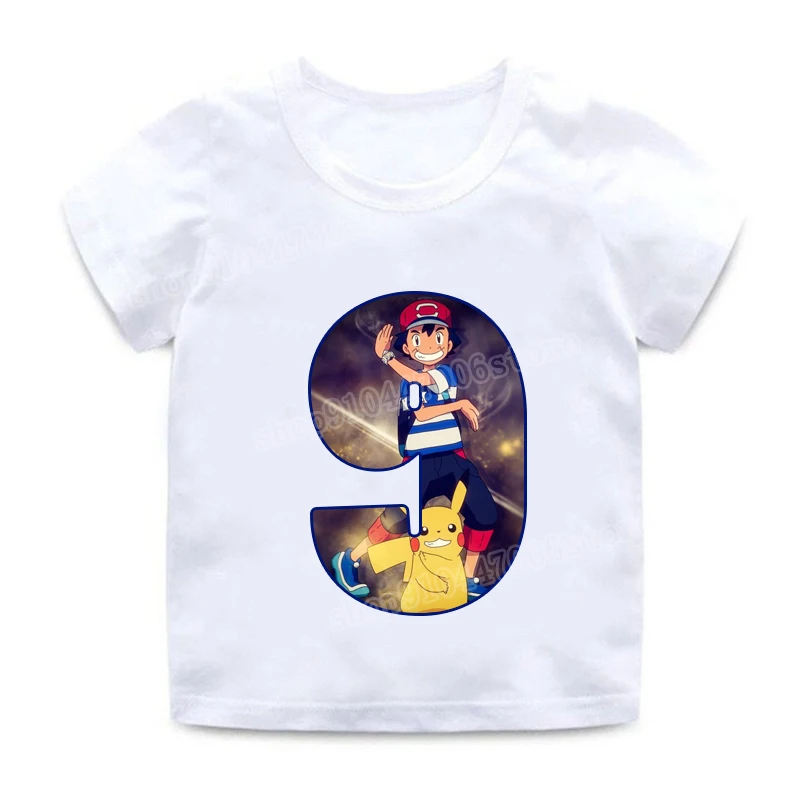 Детская футболка с изображением покемона, Детская футболка с рисунком на день рождения, Детская футболка с рисунком, одежда для мальчиков, костюмы, одежда для маленьких девочек