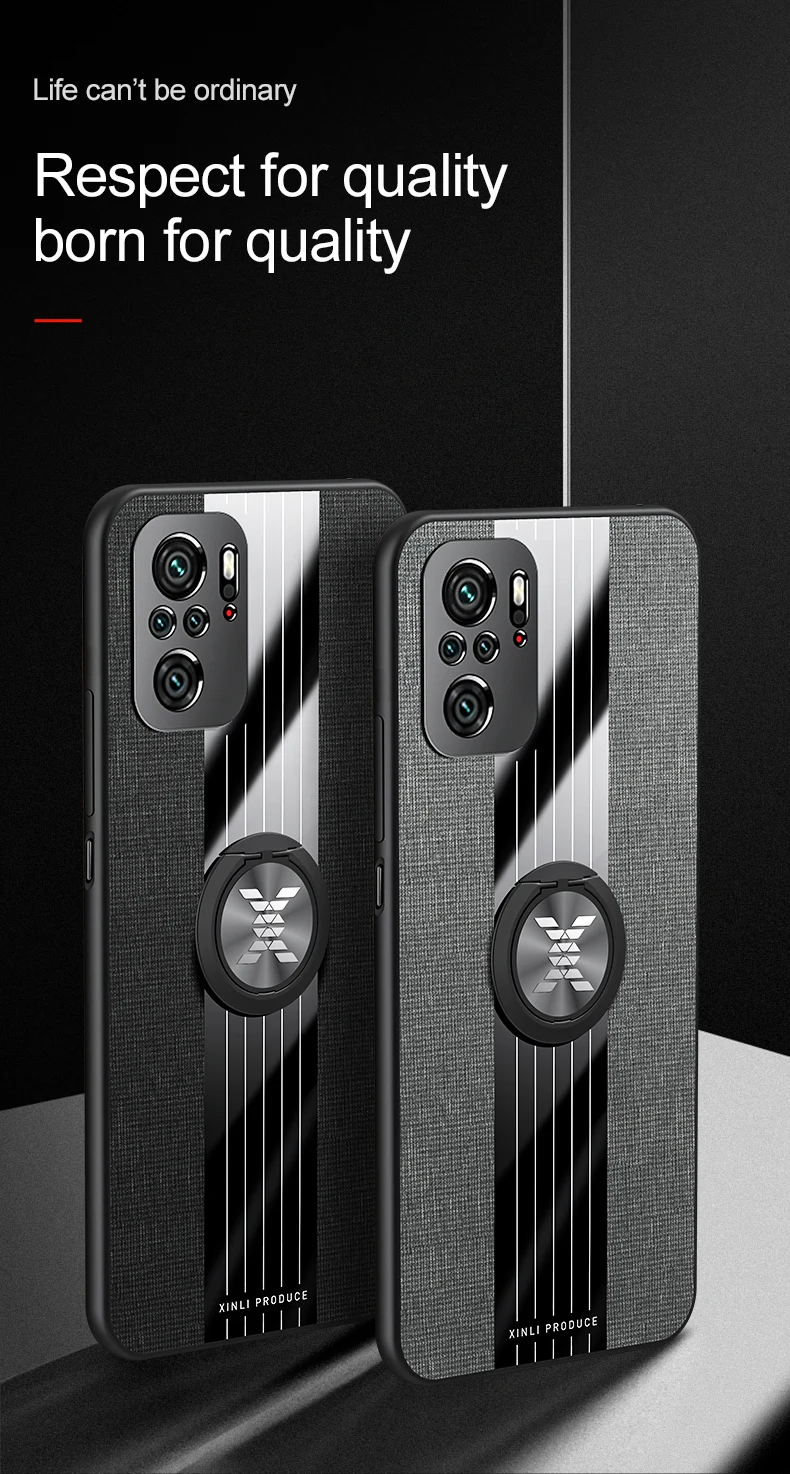 Чехол для Redmi 9 с кольцом-держателем, тканевая текстура, Жесткий ...