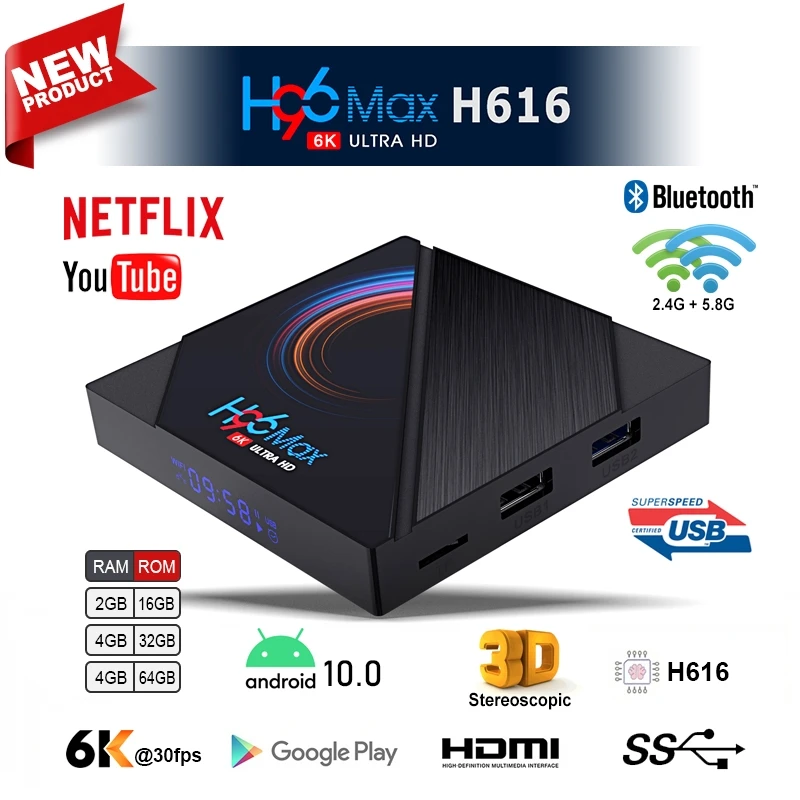 H96 MAX H616 Android 10 6K Smart TV Box 4G RAM 64G ROM Allwinner H6...