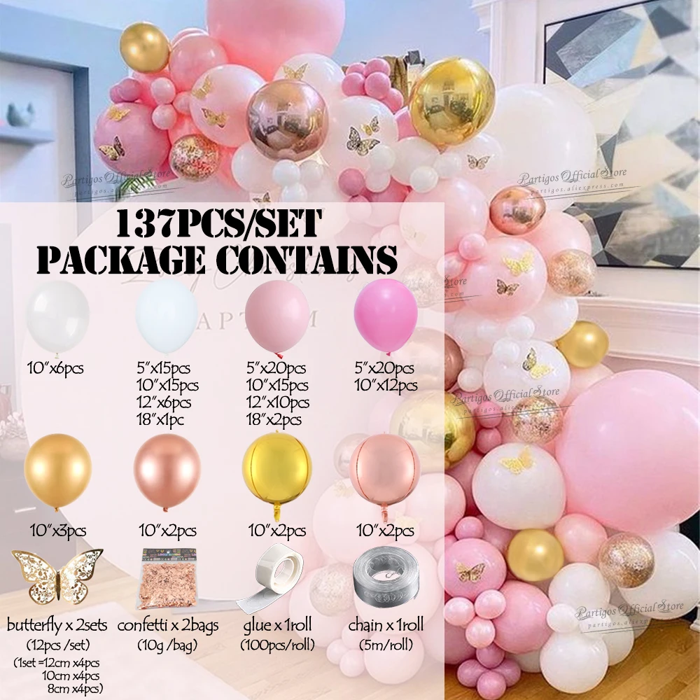 Набор шариков, гирлянда из розового золота с конфетти, макарон, розового цвета, арочный комплект, украшения для дома и будущего малыша, 137 шт.