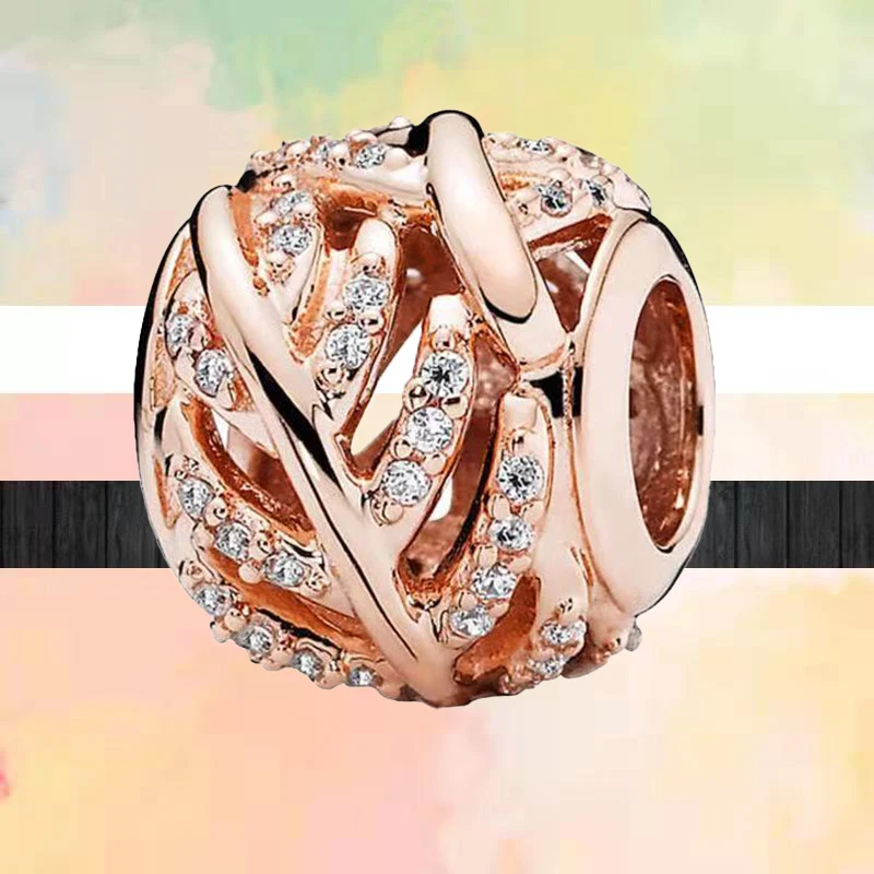 Новые бусины из циркония в виде крыльев, Листьев, цветов, розового золота, сердца, подходят к оригинальным шармам Pandora, серебряный цвет, браслет сделай сам, женские и женские ювелирные изделия для девочек