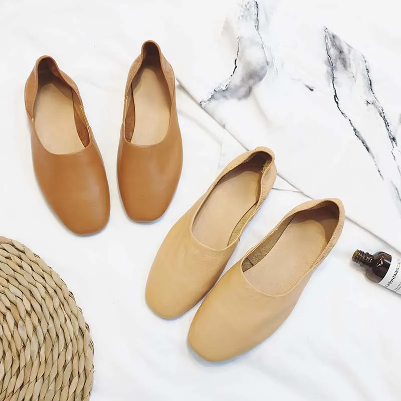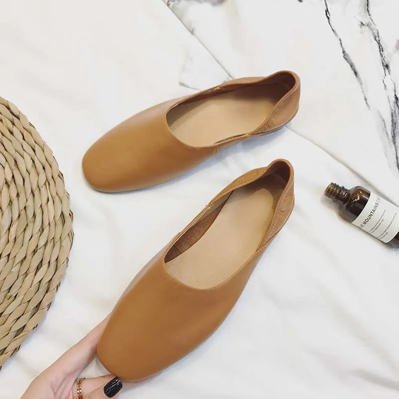 Весенняя женская обувь из натуральной кожи в стиле ретро, бабушкины туфли из воловьей кожи, балетки на плоской подошве, лоферы с закрытым носком