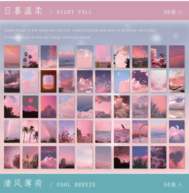 Теплые 6 видов конструкций 50 шт.лот, стикеры в стиле Ins с милыми закатами, пейзажами, дневником, альбомом, эстетическим оформлением скрапбукинга, планером, дневником, Канцтовары
