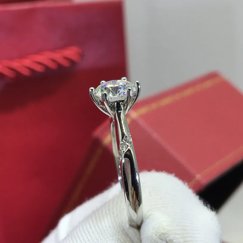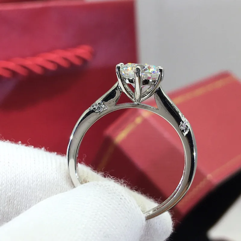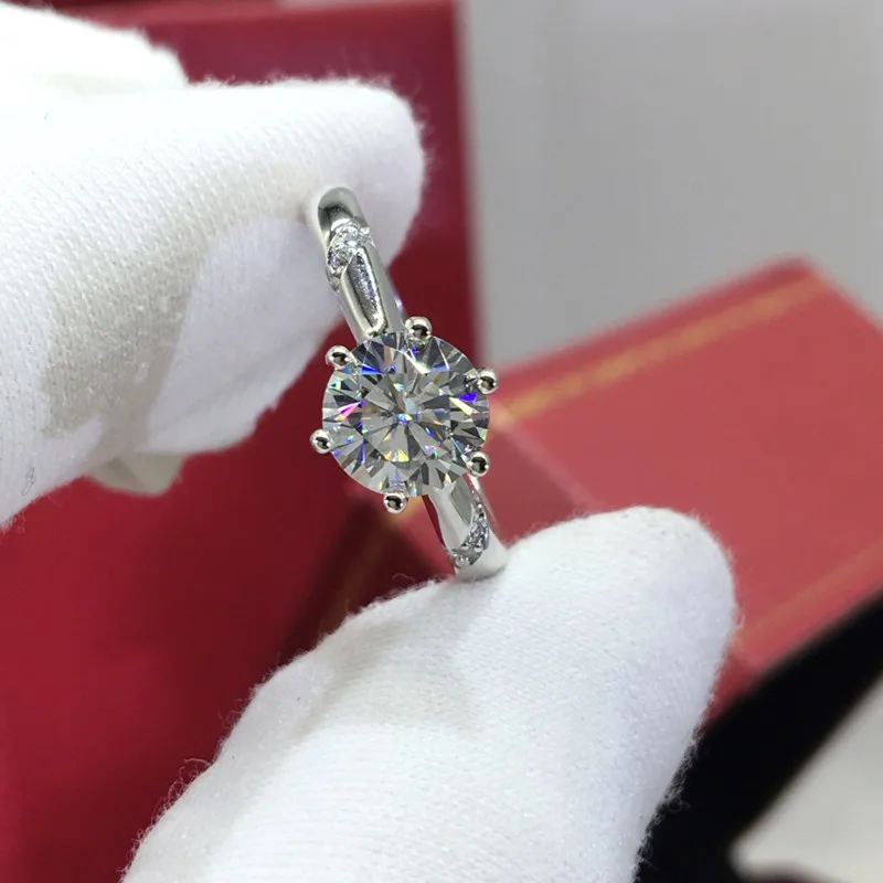 Кольцо женское из серебра 925 пробы с муассанитом 1-2 карата D, VVS1