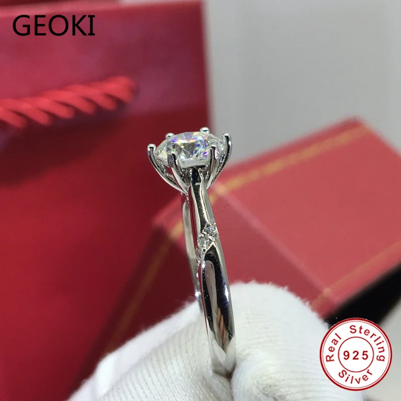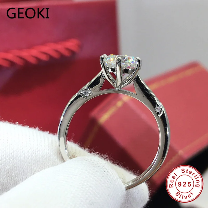 Geoki 925 пробы серебро прошел алмаз Тесты 1 Ct идеальный крой D Цв...