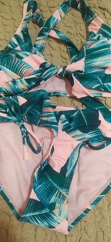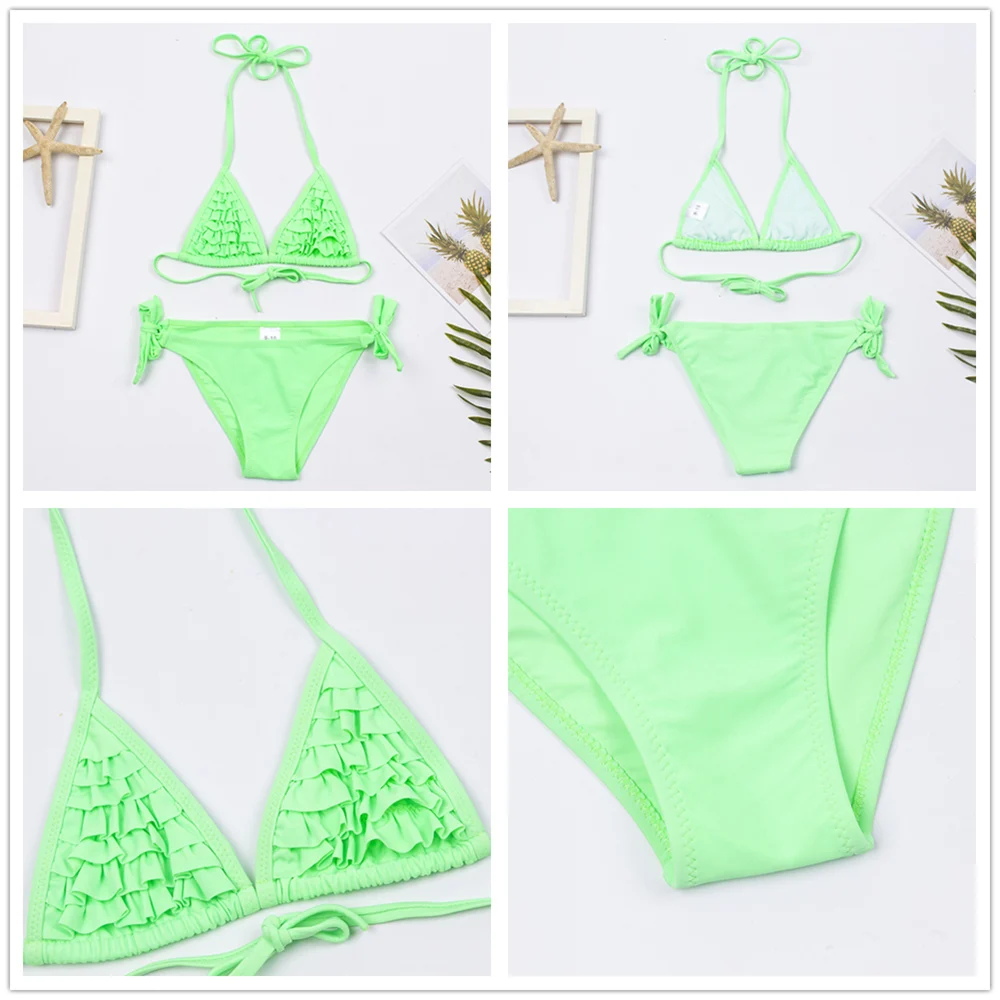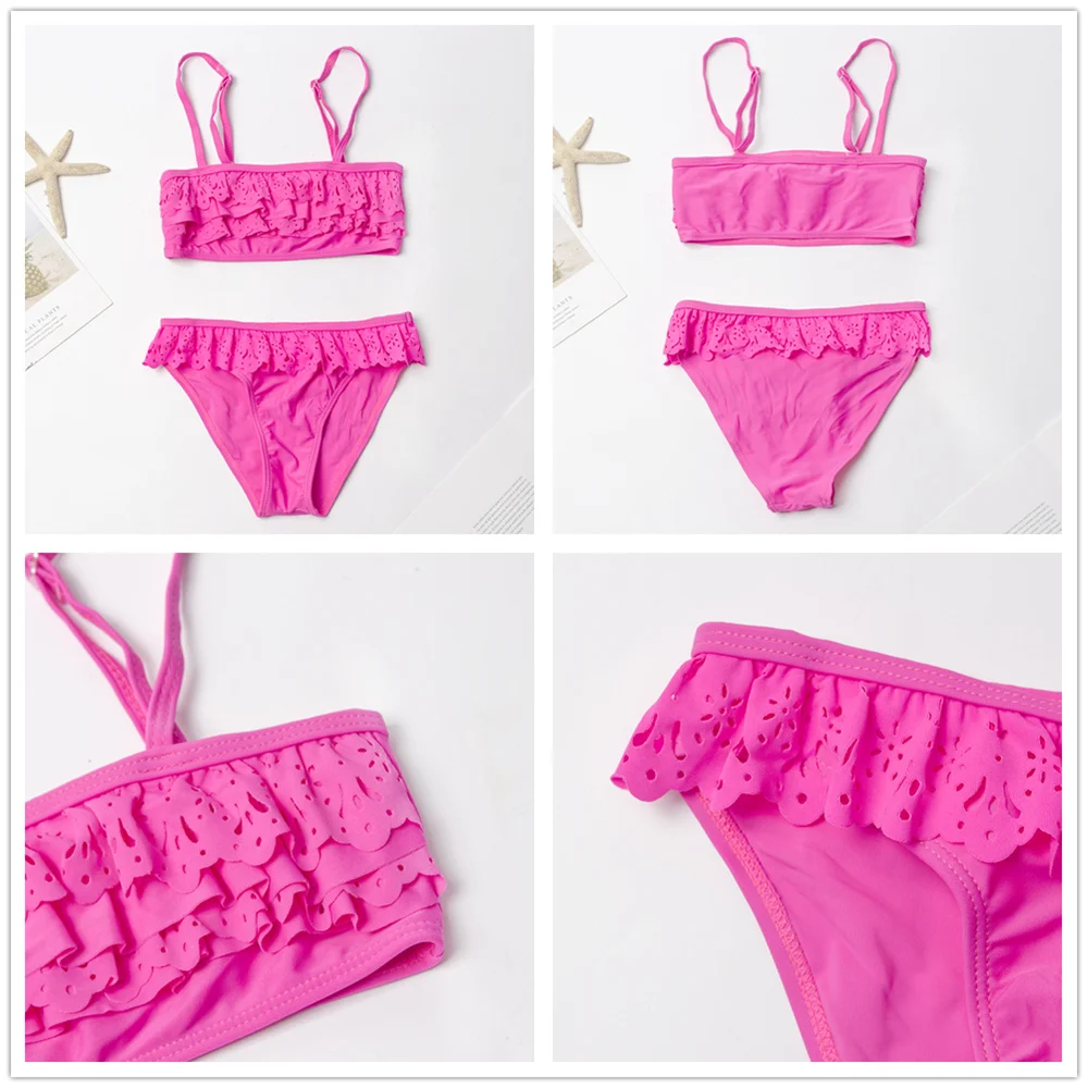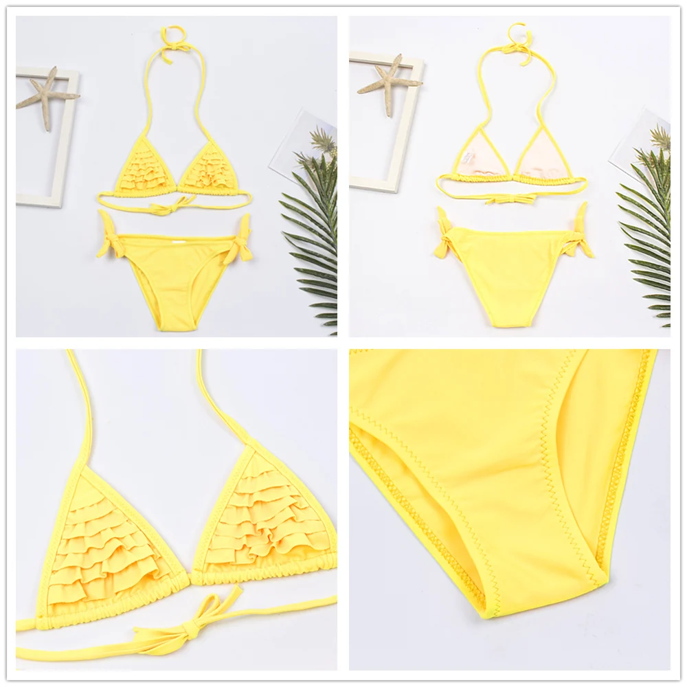 Детский бандажный купальник с принтом листьев, для девочек, От 7 до 14 лет, комплект бикини с оборками, оптовая продажа, Детские бикини, 278