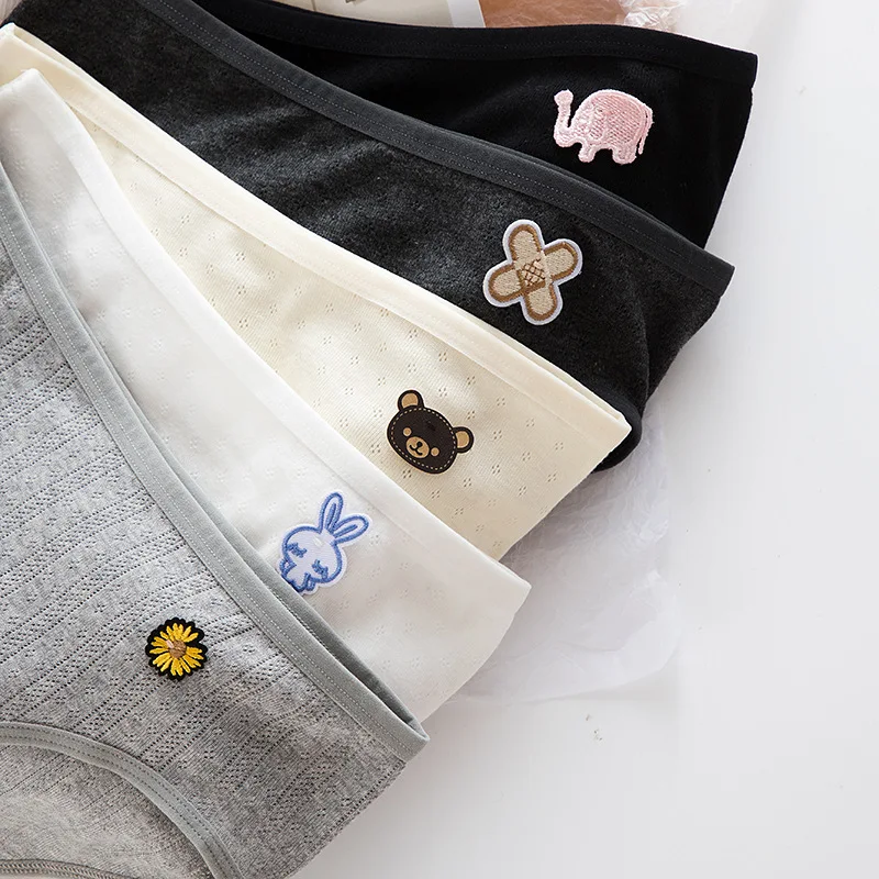Женские трусики с мультяшными животными, дышащие однотонные хлопков...