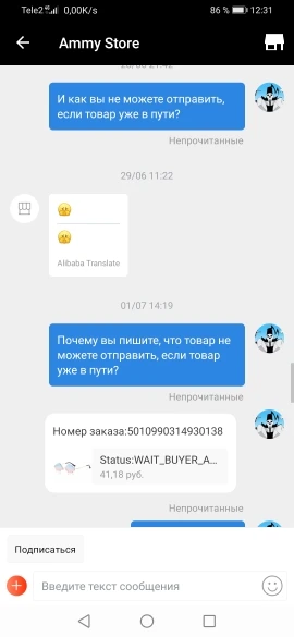 Продавец обманщик, отменил доставку товара и врал что всё в порядке. Отмена транспортировки, открыла спор и вернула деньги. Не заказывайте у этого продавца