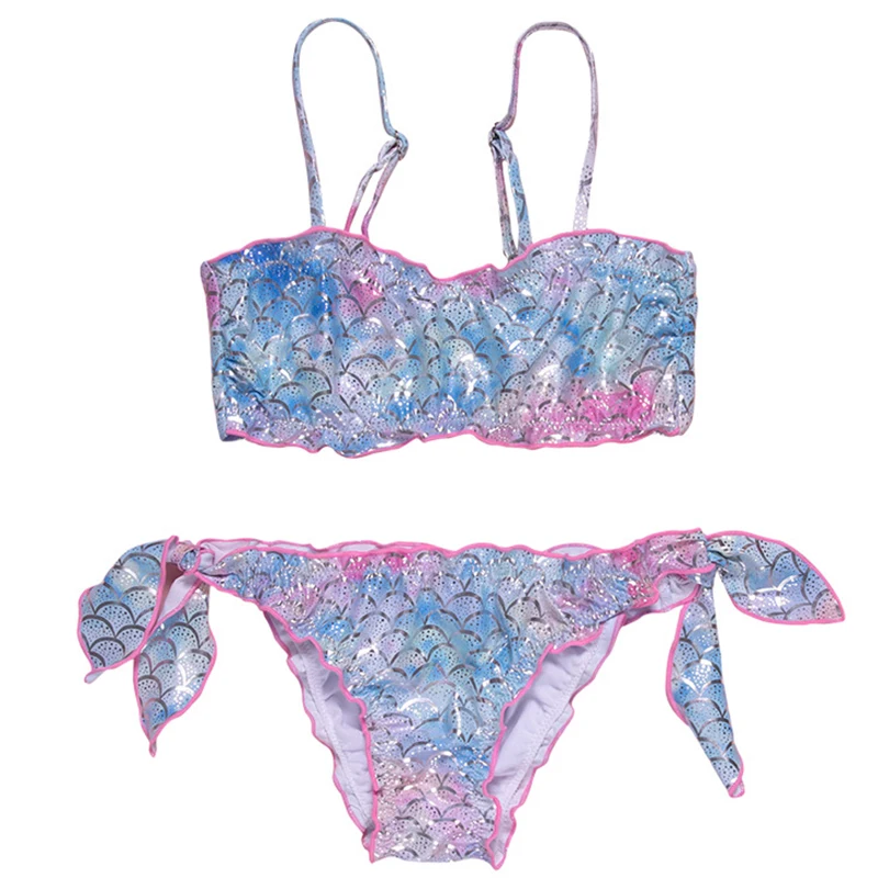 Женский купальник-русалка, комплект бикини с оборками для девочек, ...
