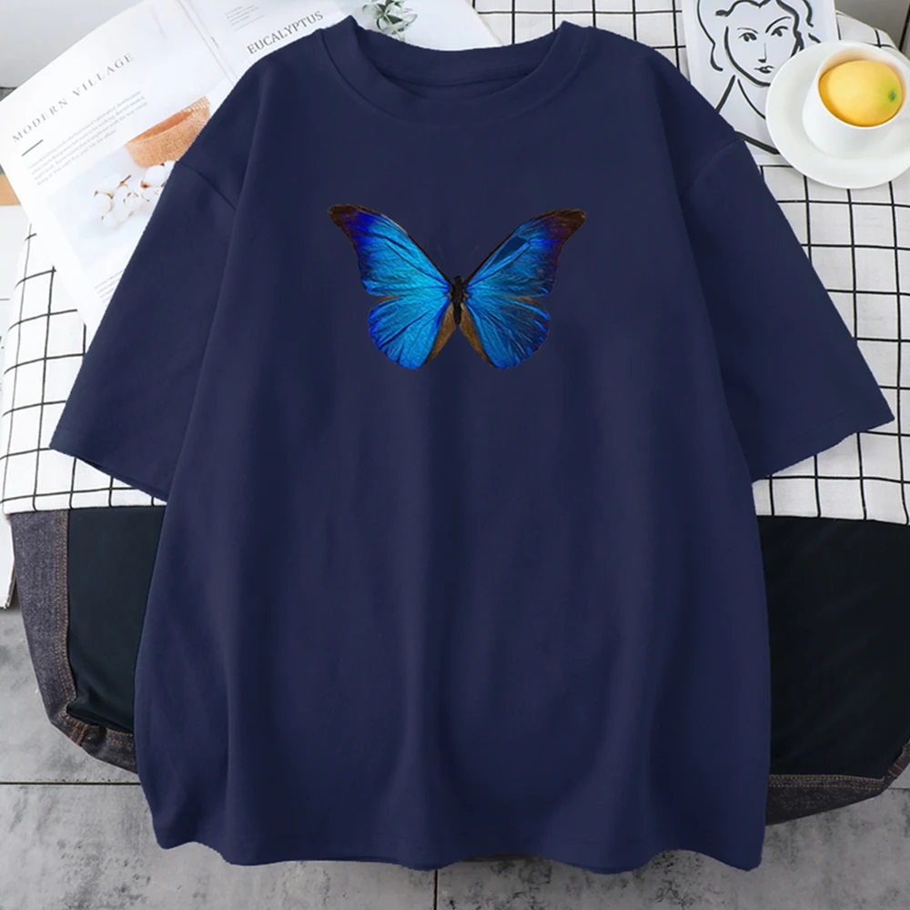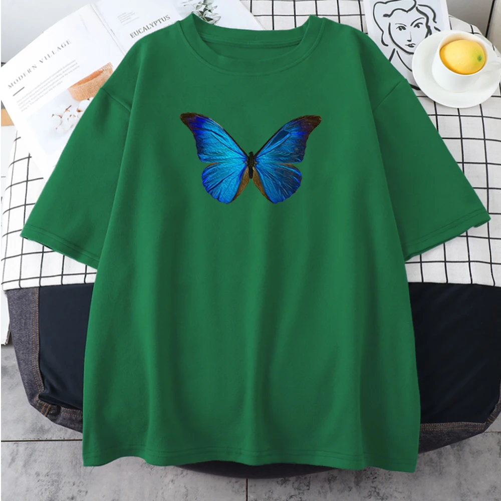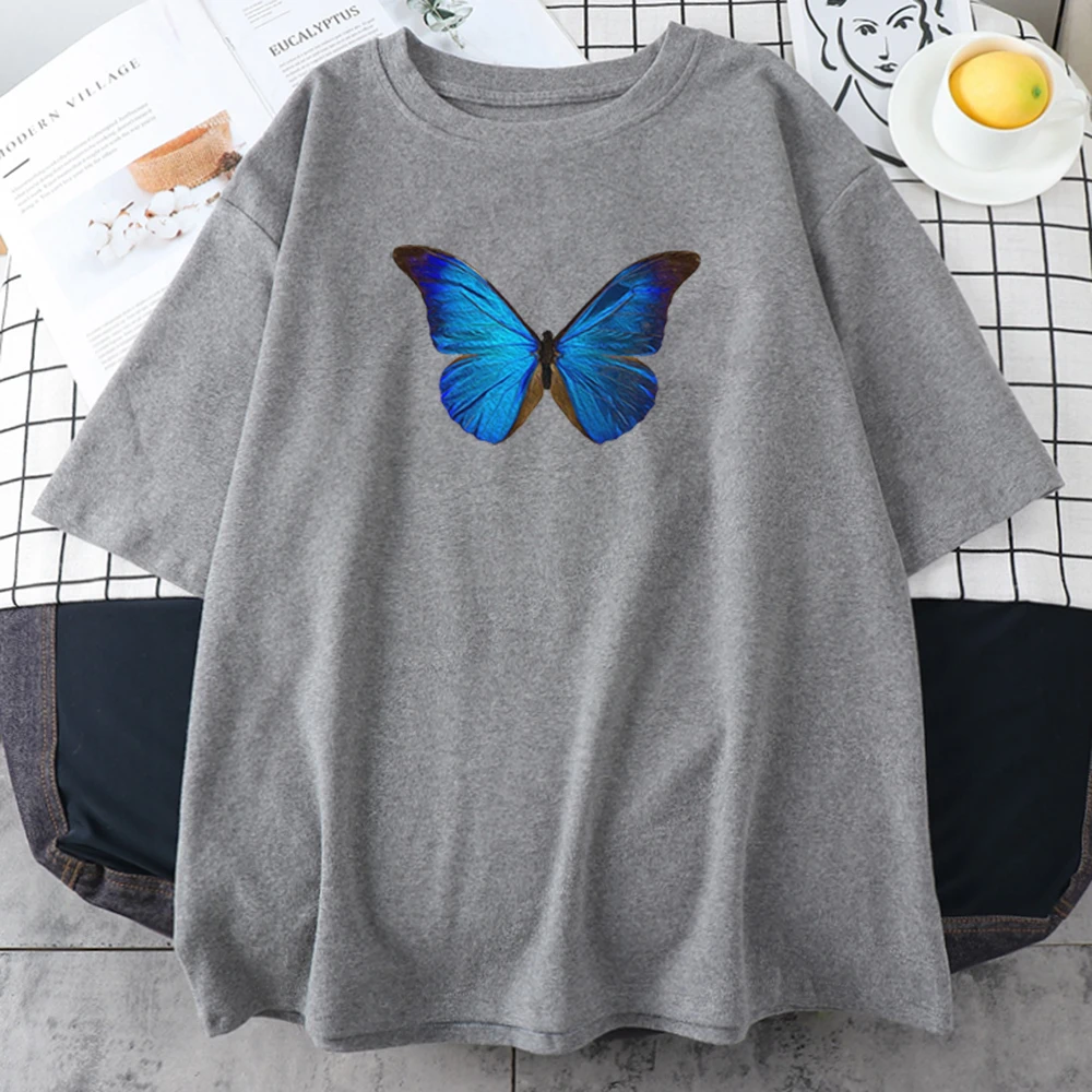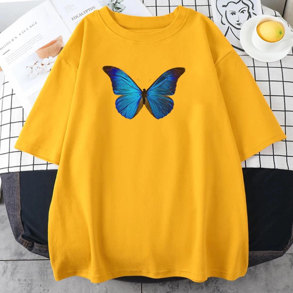 Футболка женская оверсайз с принтом бабочек и коротким рукавом