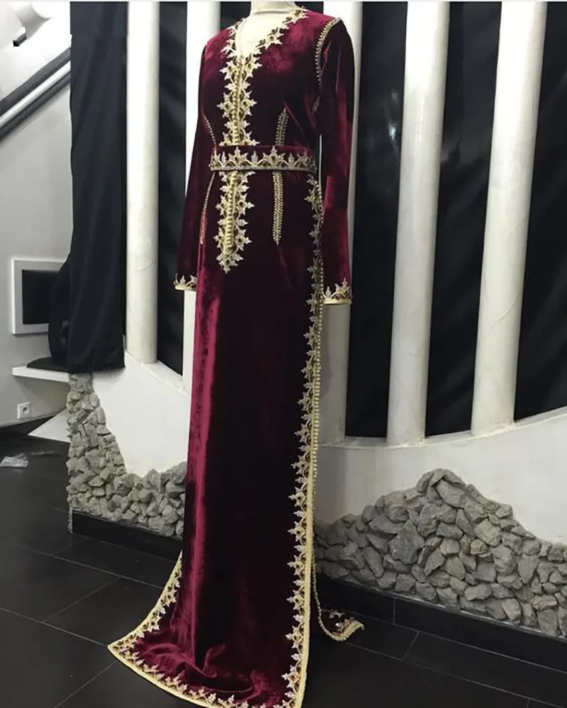 Сафьяно-красное вечернее платье-Русалка с V-образным вырезом и длинным рукавом
