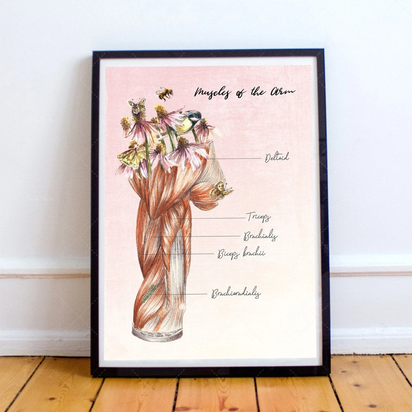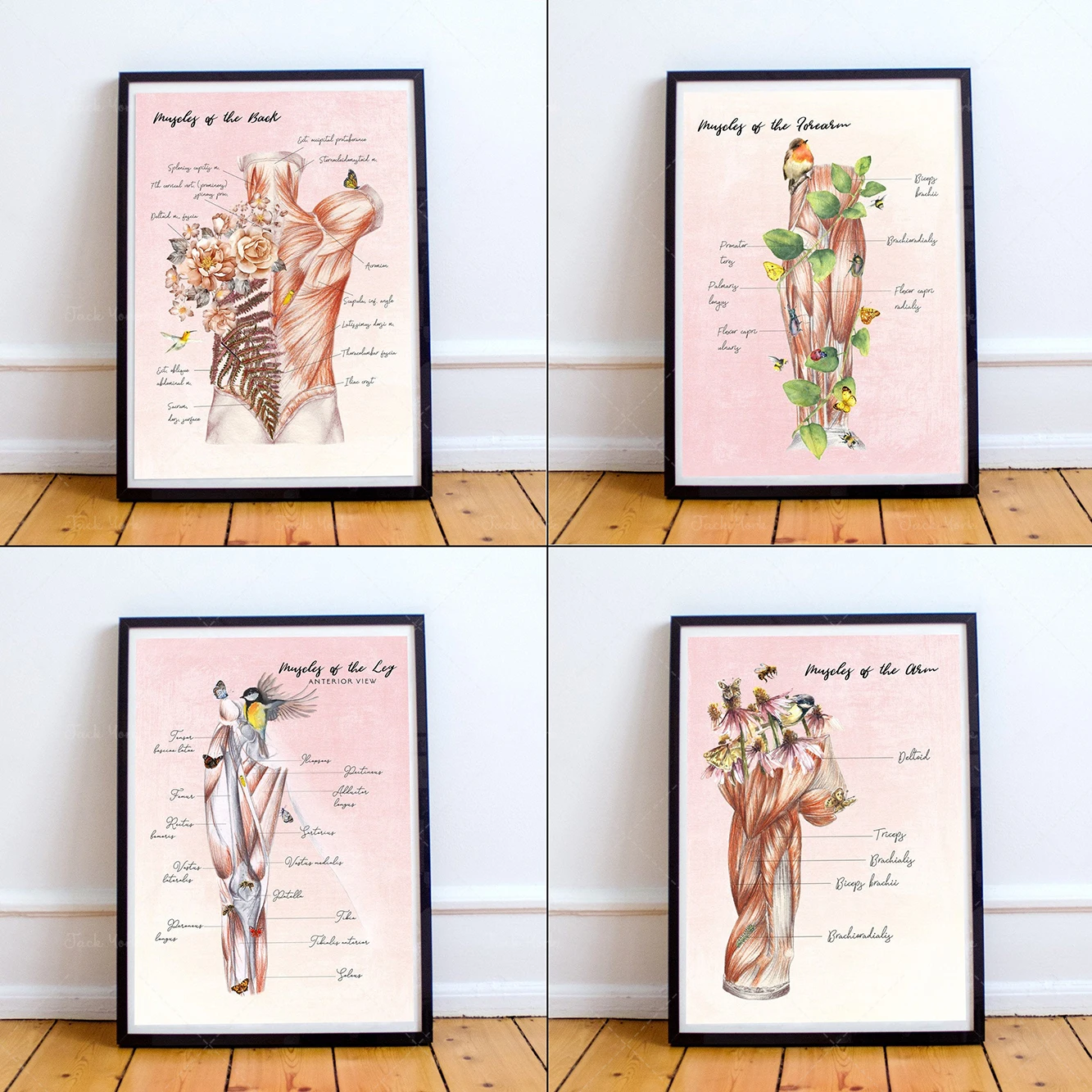 Подарок для массажера, Цветочная анатомия, Массажная комната, искусство, мышечное искусство, терапия, принты для натурального офи