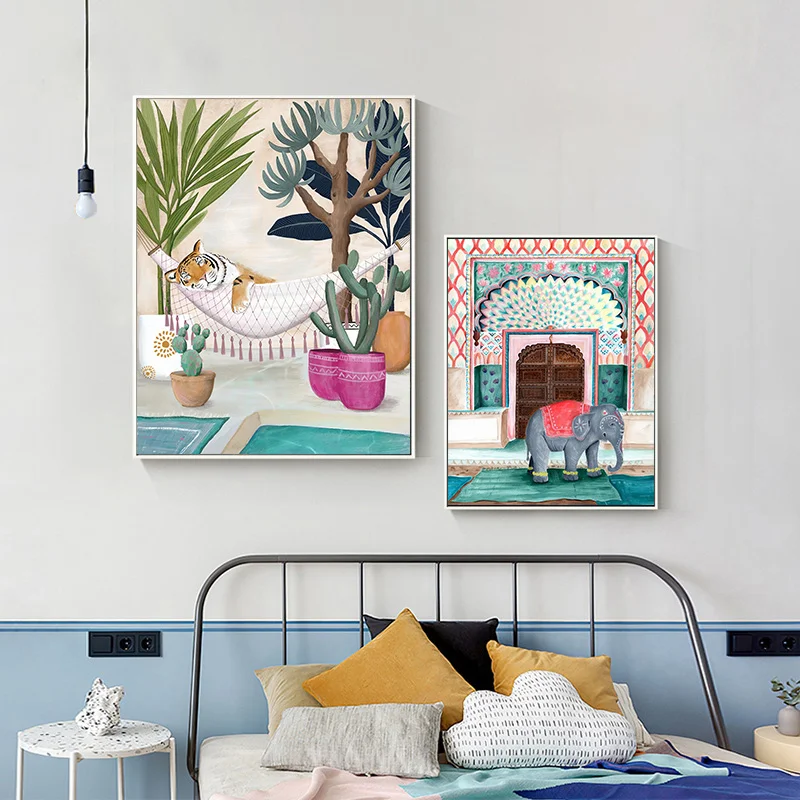 Простой скандинавский абстрактный акварельный слон, тигр, леопард, Настенная роспись, декоративная картина для крыльца