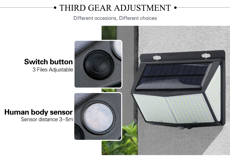 Уличная лампа на солнечной батарее с датчиком движения, светодиодный водонепроницаемый светсветильник светильник с питанием от солнечного света для украшения сада, 222, 100 светодиодов