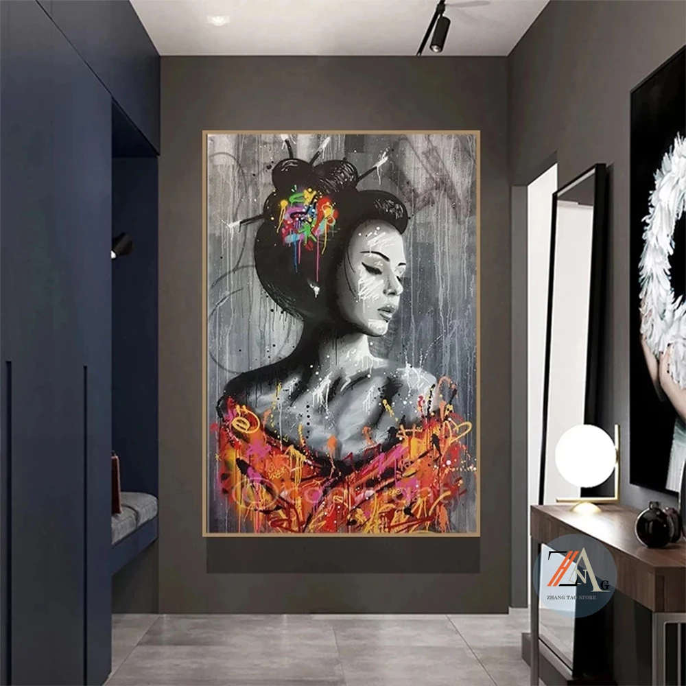 Сексуальный Портрет женщины в японском стиле граффити картины на холсте настенные картины для декора гостиной (без рамки)