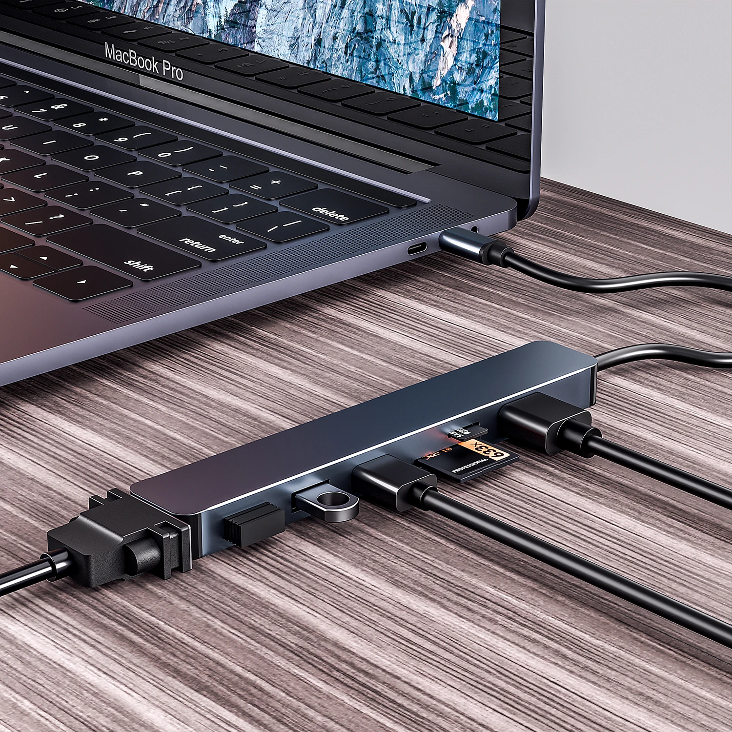Характеристики:Материал: алюминиевый сплавЦвет: серебристый/серыйРабочая температура: 40-45 °Интерфейс:> Разъем USB 3,1 Type-C> USB 3,1 Type-C порт для зарядки> Только порт передачи данных USB C> Порт USB 3.0 Type-A> Выходной порт HDMI> Слот для tf-карты
