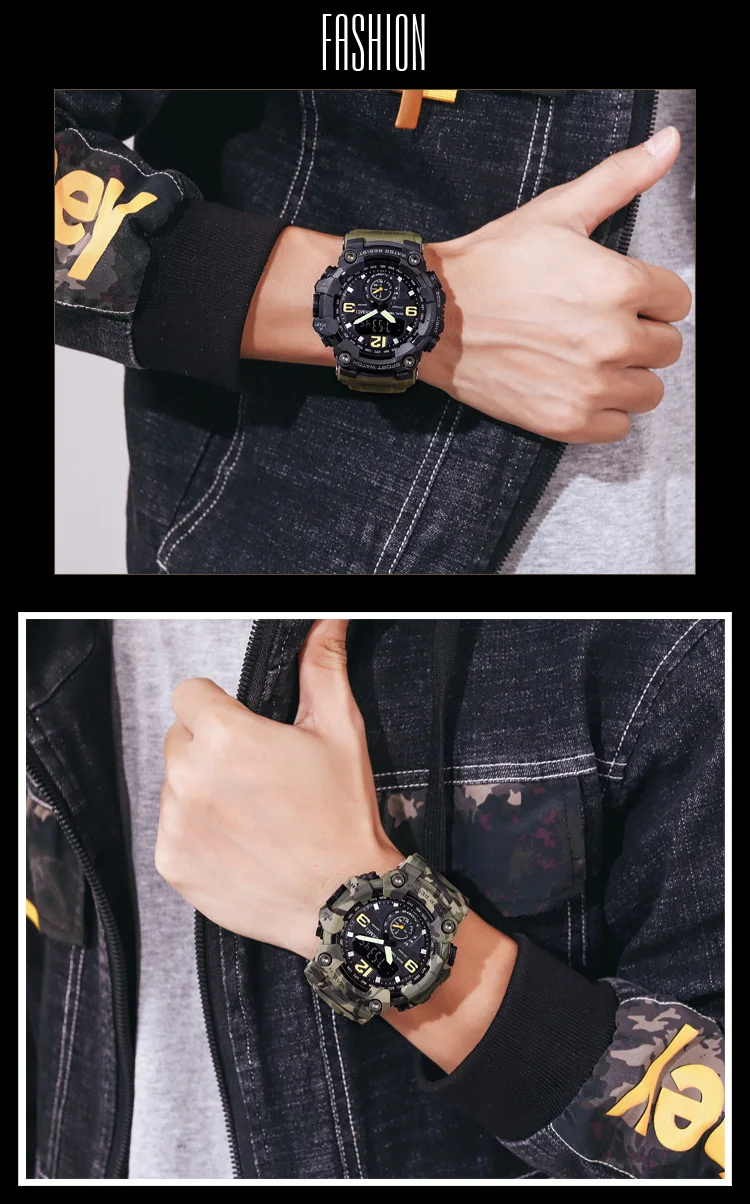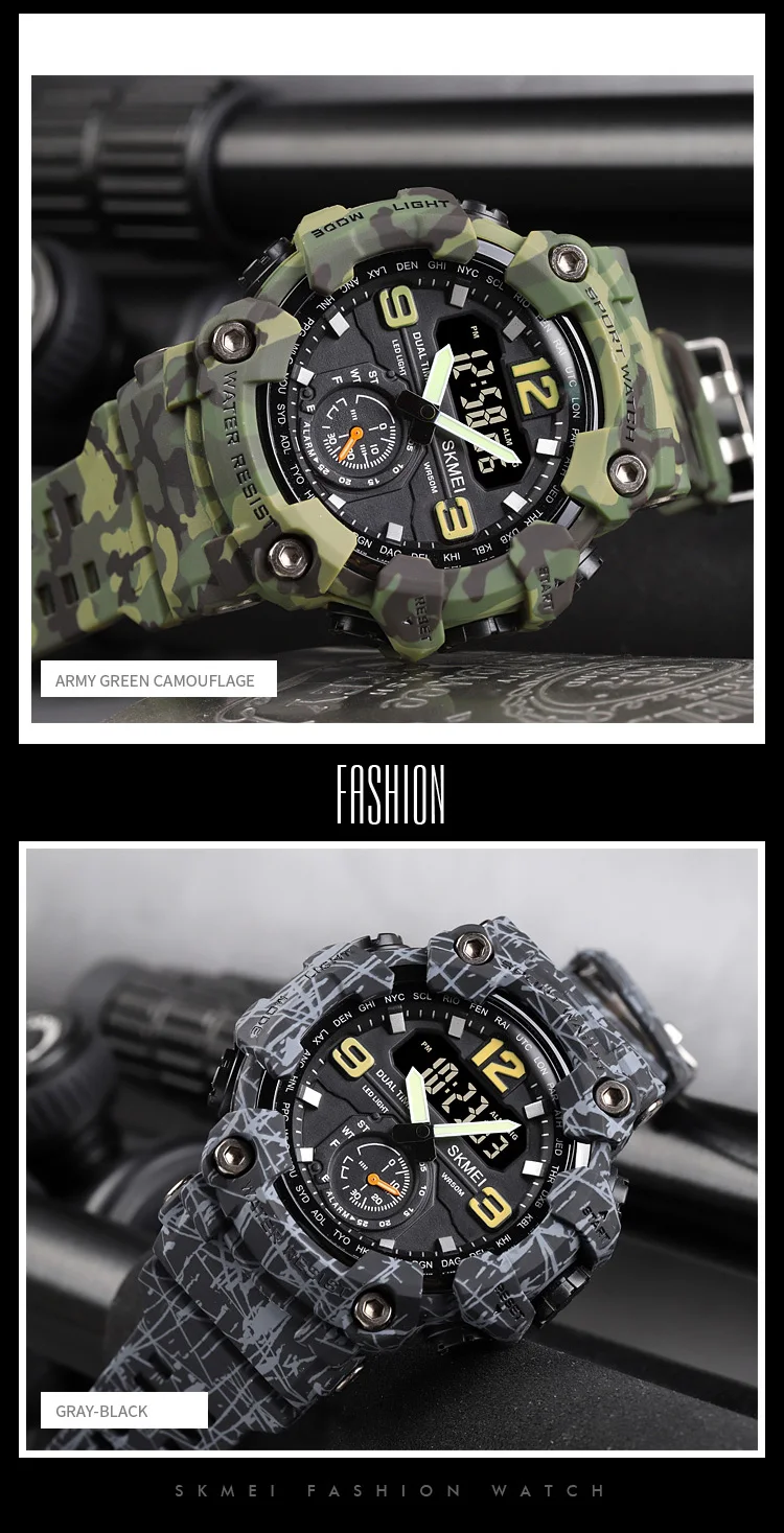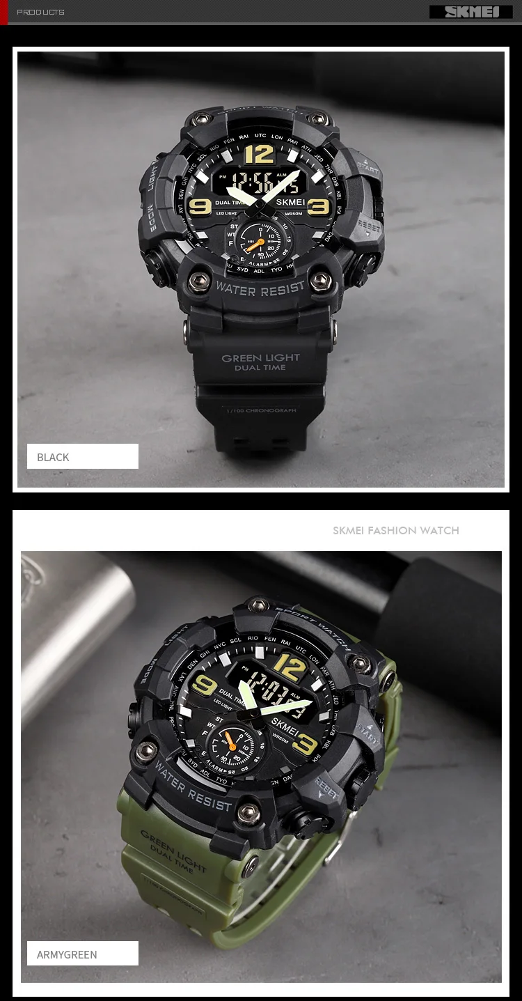 Часы наручные SKMEI Мужские кварцевые, спортивные светодиодсветодиодный аналоговые в стиле милитари, с двойным дисплеем, в японском стиле, t 3