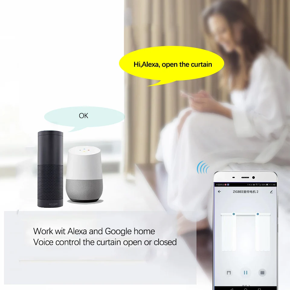 Мотор для штор Zigbee Smart Tuya с электроприводом, управление через приложение для Alexa Google Home