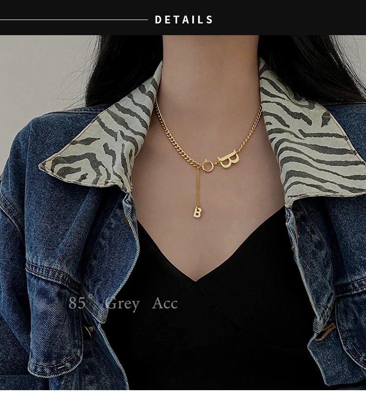 Европейский и американский преувеличенный чокер из титановой стали с буквами в, ожерелье для женщин, Готическая бижутерия, цепочка до ключиц в стиле хип-хоп для девушек