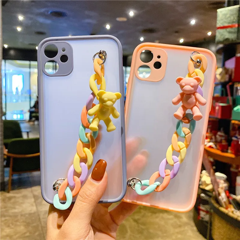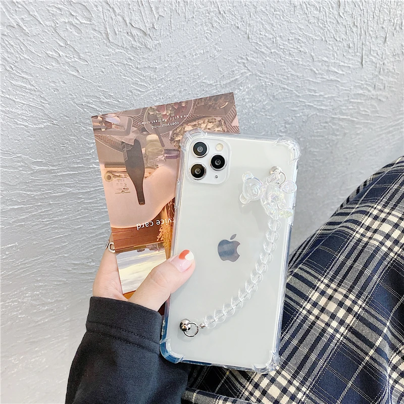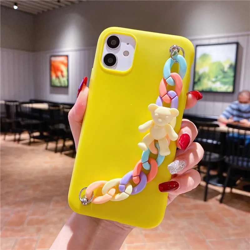 Модный милый женский мягкий чехол с 3d-браслетом и медведем для Iphone 11 12 Pro Max Mini 7 8 Plus Xr X Xs Max Se 2, чехол для телефона для девушек, чехлы