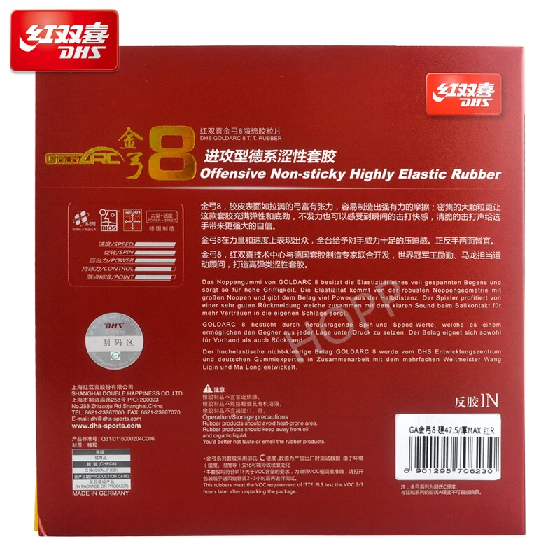 DHS GoldArc 8 резиновая губка для настольного тенниса, сделанная в Германии, оригинальная губка для пинг-понга с золотой дугой 8 DHS