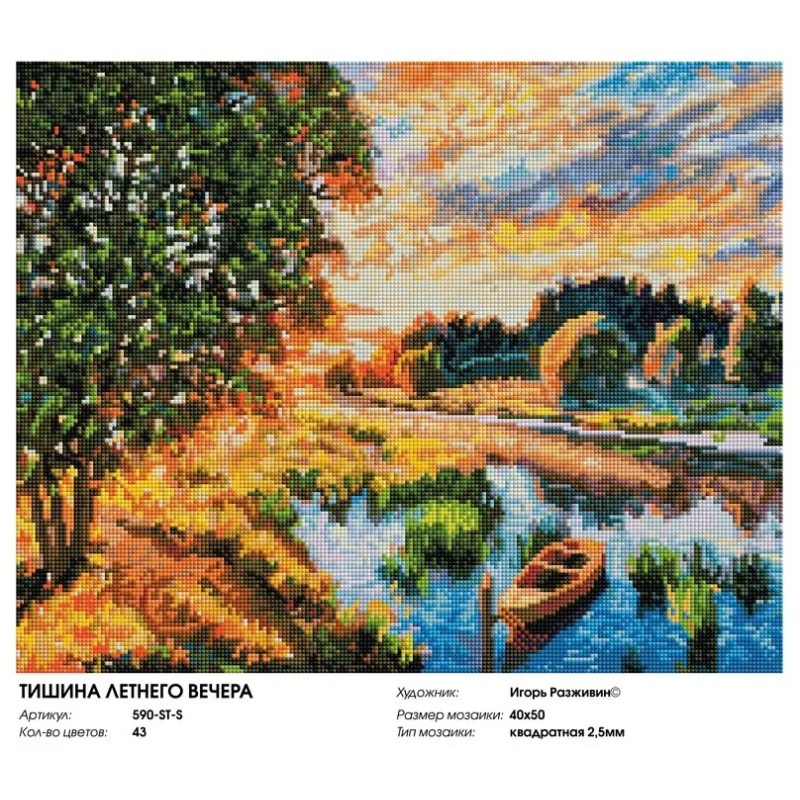 "Тишина летнего вечера ". Алмазная мозаика на подрамнике 40х50 см. Белоснежка. 590-ST-S