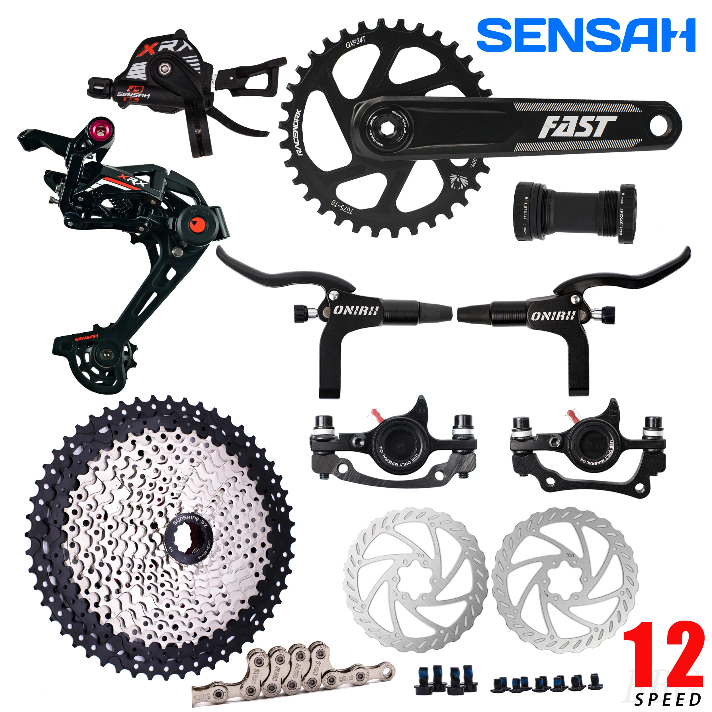 Бренд: SENSAHМодель: XRX 1x12 СкоростейЗадний переключатель1:1 технология обеспечивает точность и плавность сдвигаТехнология блокировки когтей в виде клетки делает все быстрее и повышает эластичность регулируемой пружины. Задний переключатель стабилизатор устраняет цепные хлопкиВсе алюминиевые детали, Модернизированный скрытый задний циферблат Указка на палецТочная и последовательная производительность сдвигаДвусторонний выпускАлюминиевая ручка для сдвига с нескользящей конструкциейКрасивый внешний вид,Кривошипный бренд: ONIRIIТормоза: ONIRII тормозной шланг: (800 / 1400 мм и т. д.)Звездочка: 32T/34T/36T/38T совместима с новой моделью ShimanoВал: 24 мм (BSA, PF30, BB30, BB86-92 Нижний Кронштейн)Цепь:Скоростная цепь SUMC12 126 литровМаховик: маховик11-46 T11-50 T11-52 T