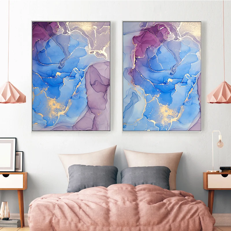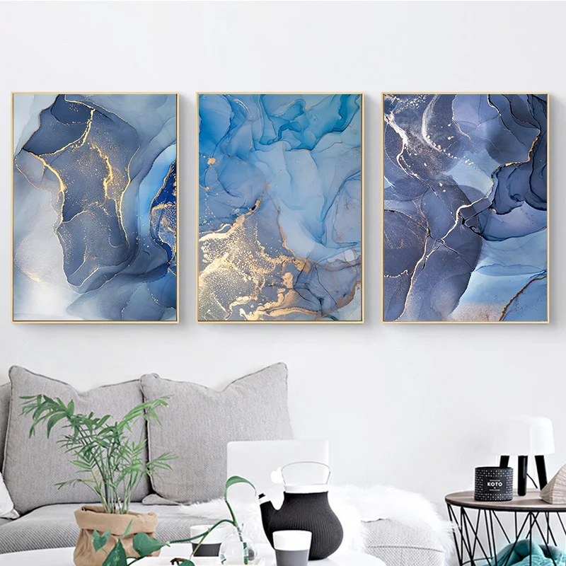 Абстрактная Картина на холсте постер Золотая синяя стена Художественная печать современный стиль холст чернильная картина нордическая декоративная картина домашний декор