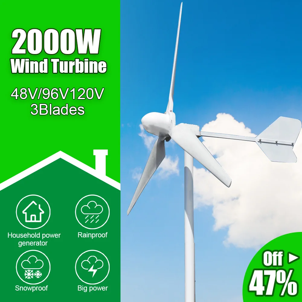 Горизонтальный ветряной генератор свободной энергии, 2 кВт, 48 В, 96 в, 120 В, низкая оборота в минуту, ветряная мельница для фермы, домашнего использования в лодке