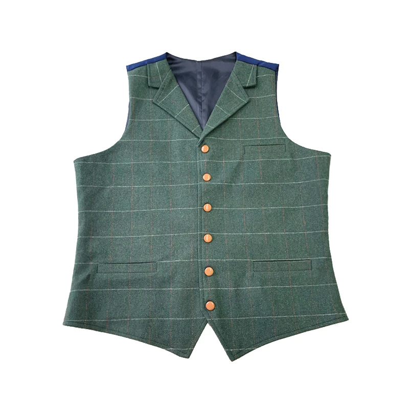 Мужской твидовый жилет с отложным воротником, шерстяной жилет в ело...