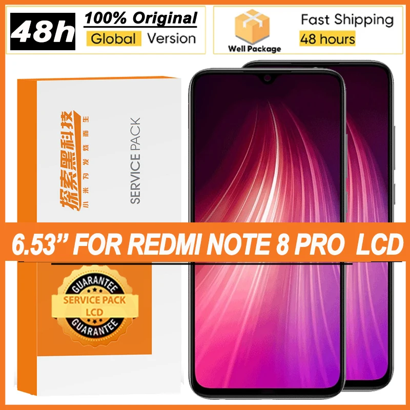Оригинальный дисплей 6,53 дюйма с рамкой для XiaoMi Redmi Note 8 Pro, 10 шт., ЖК-дисплей с сенсорным экраном, дигитайзер в сборе, запасные части для Note8 Pro