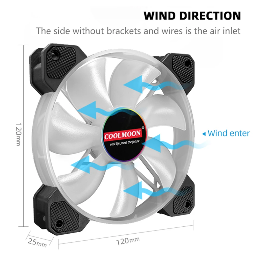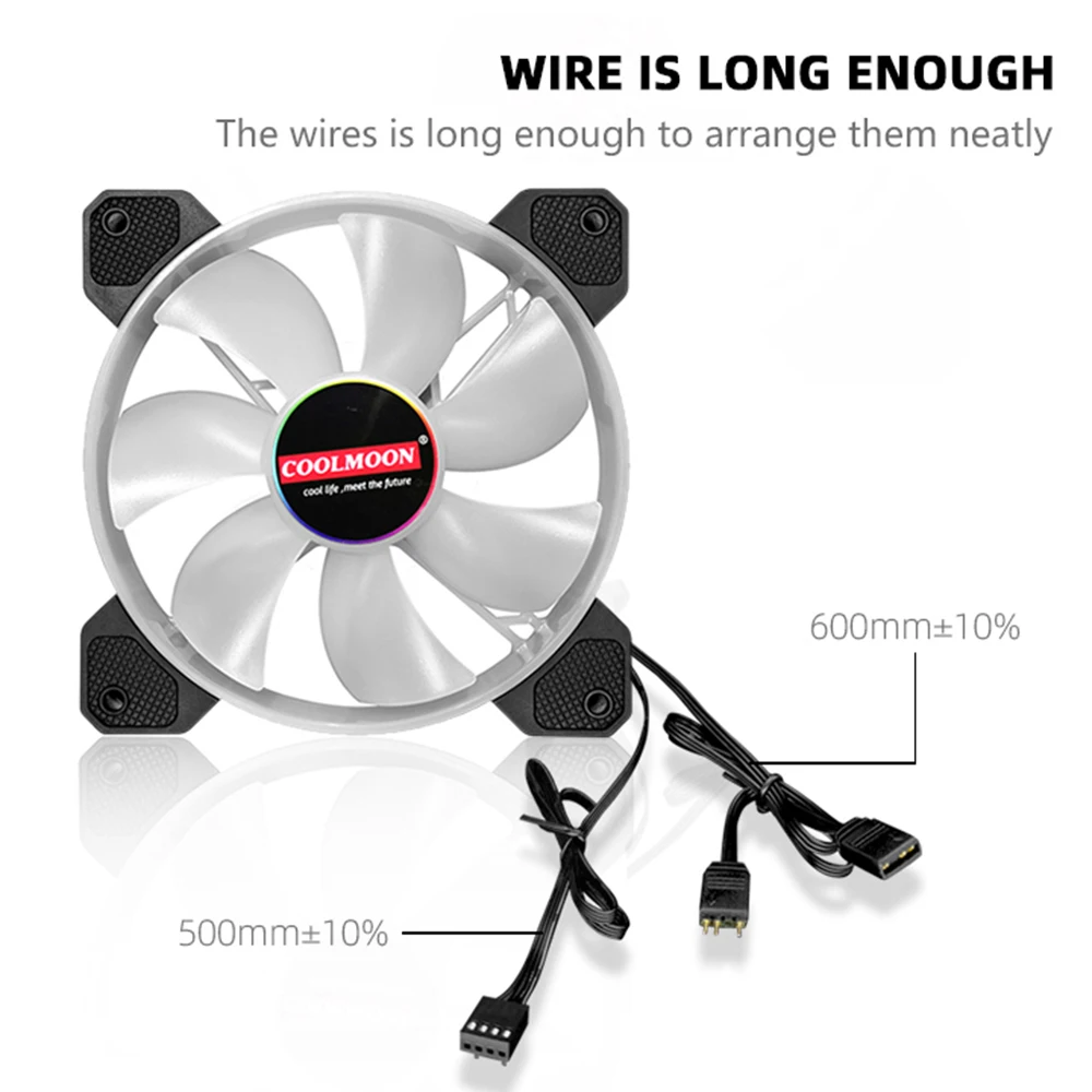 Кулер Coolmoon для компьютера, 120 мм, 5 В, 3 контаксветодиодный