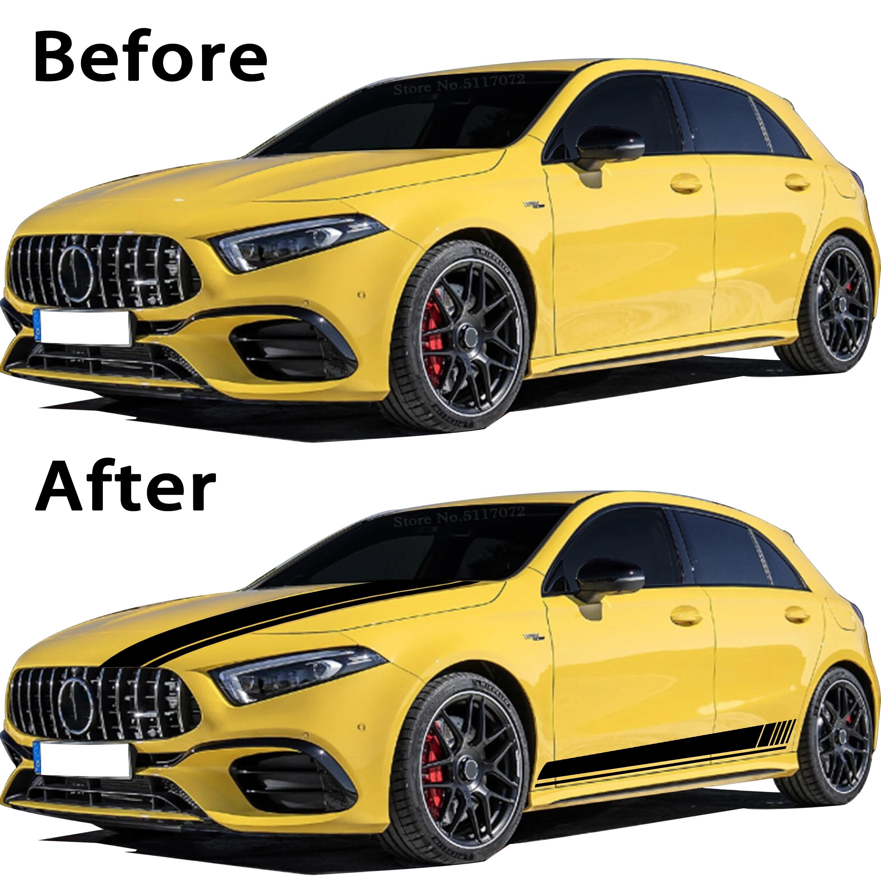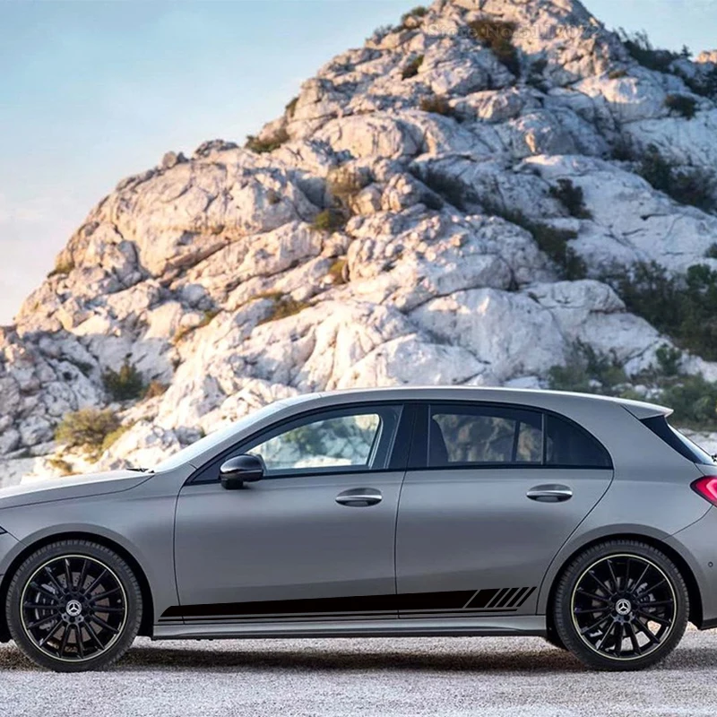 Для Mercedes Benz A Class W177 5-дверный хэтчбек 2018-настоящее издание 1 AMG Автомобильная виниловая наклейка боковые полосы юбка наклейка