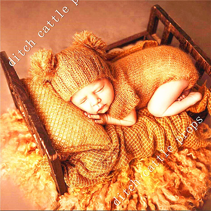 Реквизит для фотосъемки новорожденных мохеровый комбинезон и шапка из ниток ручной работы детская одежда