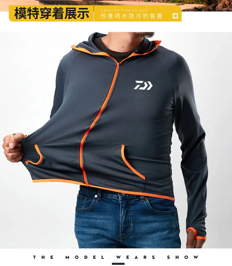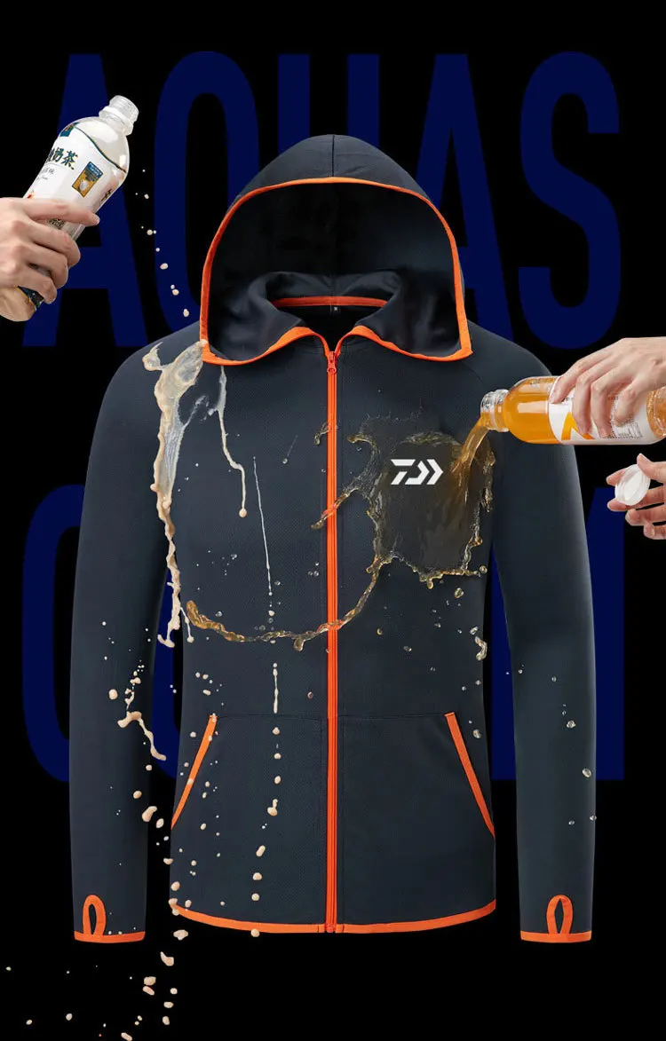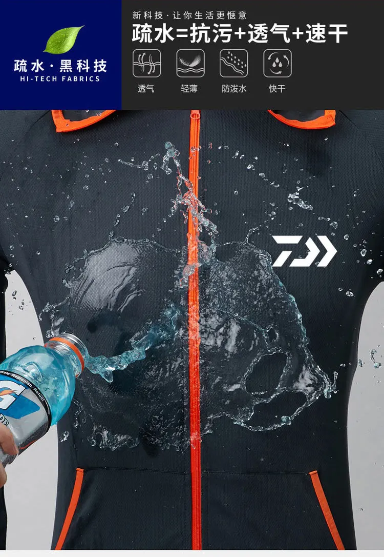Новая Водонепроницаемая мужская одежда DAIWA из ледяного шелка для рыбалки, технологичная гидрофобная одежда для защиты от загрязнений, уличная походная одежда с капюшоном для рыбалки